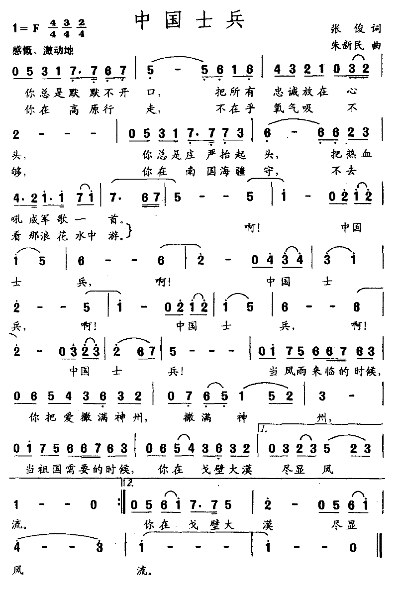 中国士兵简谱-张俊词 朱新民曲