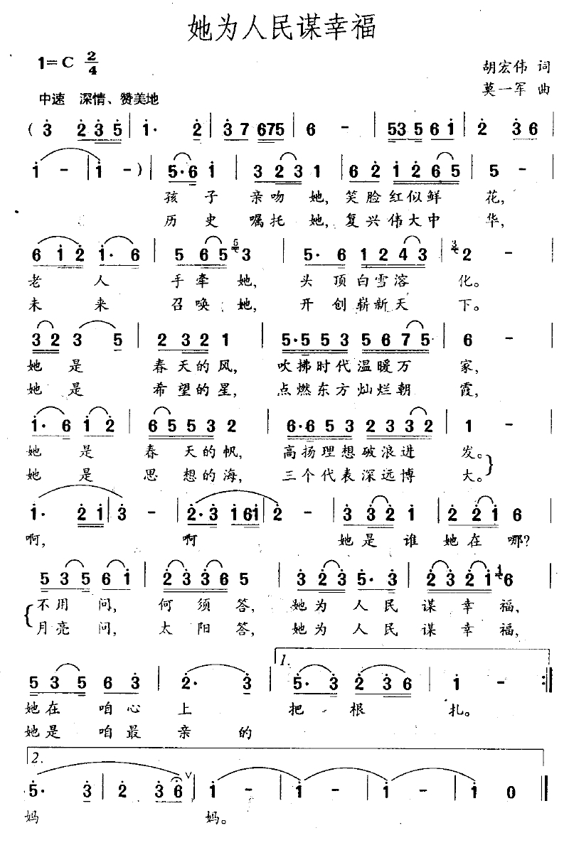 她为人民谋幸福简谱-胡宏伟词 莫一军曲
