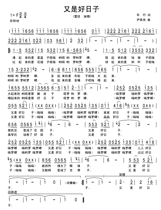 又是好日子简谱-雷佳演唱