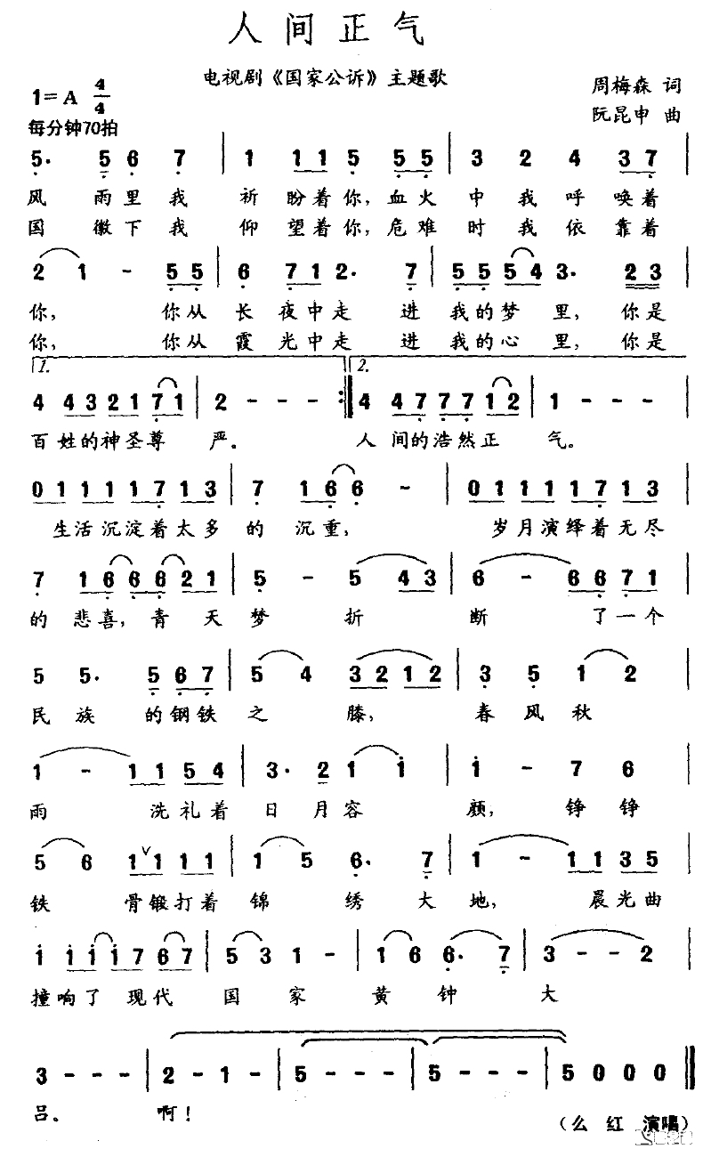 人间正气简谱-电视剧《国家公诉》主题歌简谱
