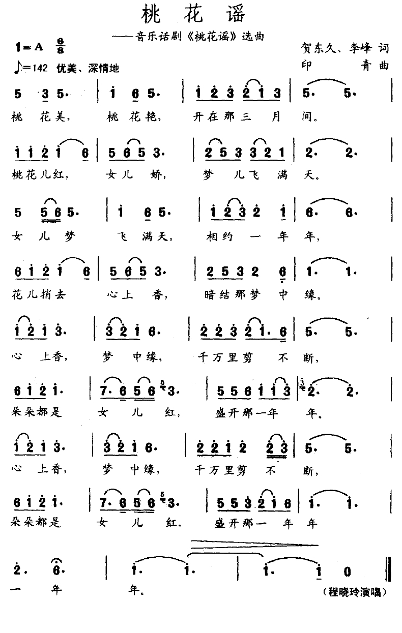 桃花谣简谱歌词