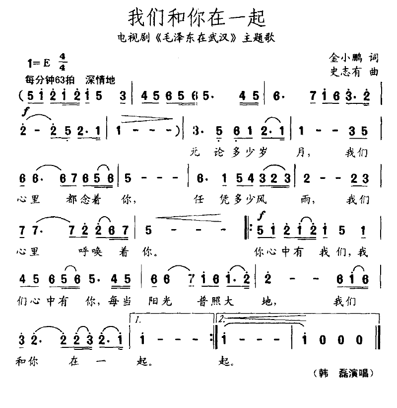 我们和你在一起简谱-金小鹏词 史志友曲简谱