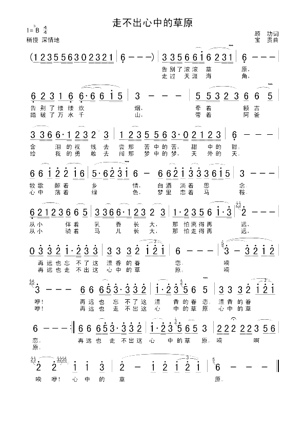 走不出心中的草原简谱-顾功词/宝贵曲简谱