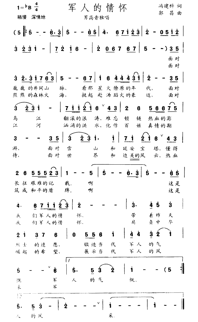 军人的情怀简谱-冯建科词 郭昌曲