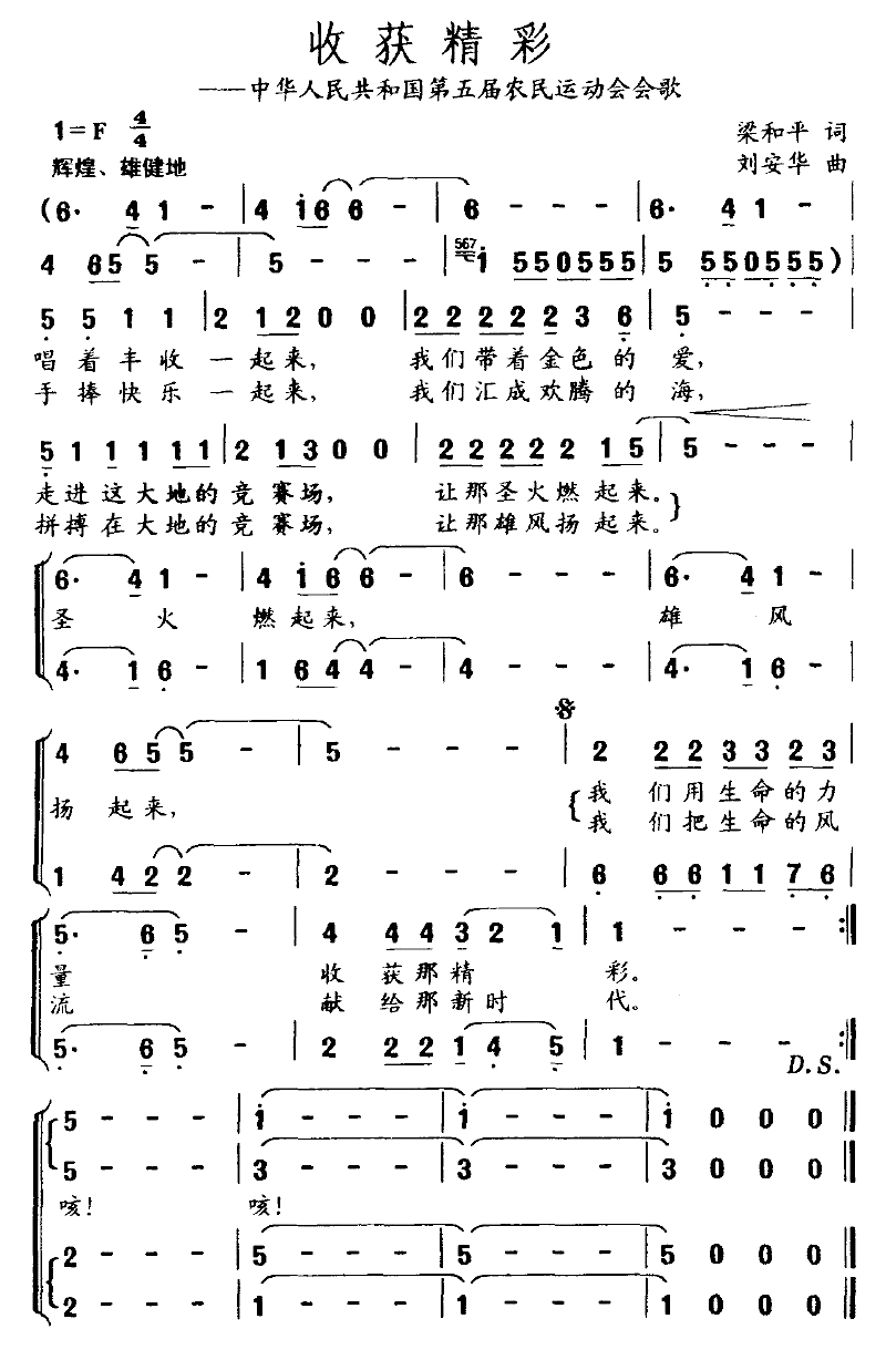 收获精彩简谱-第五届农民运动会会歌