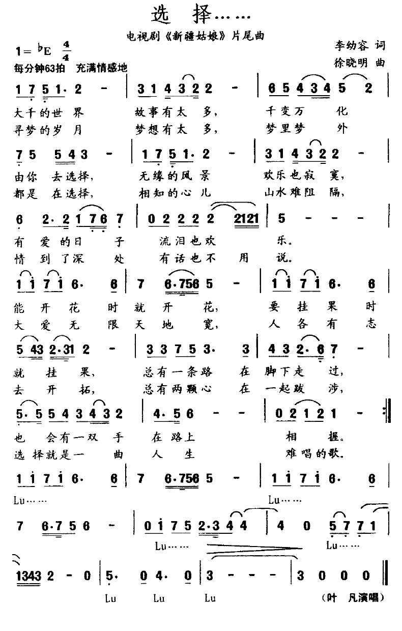 选择简谱-电视剧《新疆姑娘》片尾曲简谱