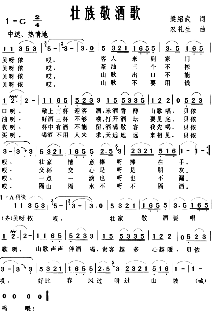 壮族敬酒歌简谱-严当当/袁泉演唱