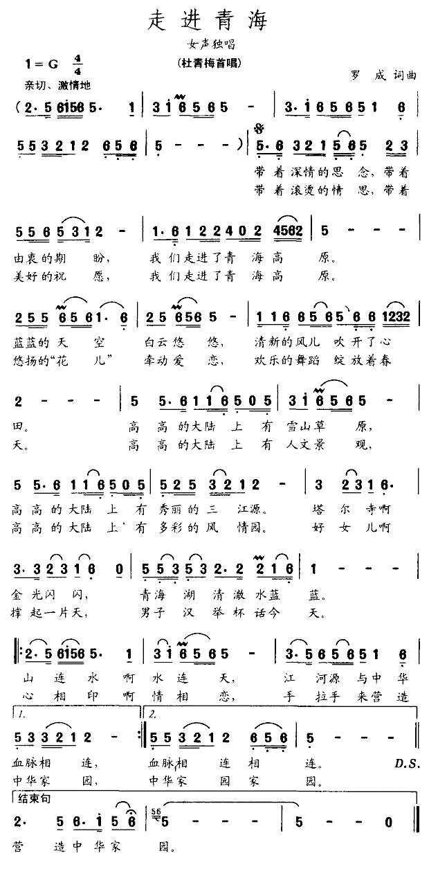 走进青海简谱-罗成词曲