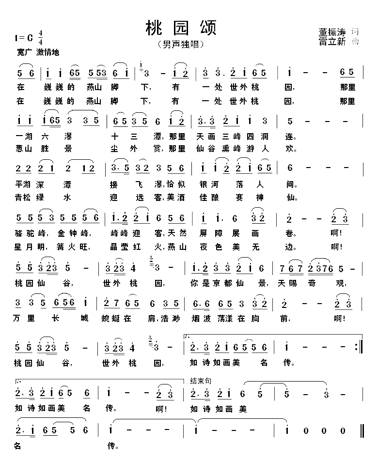 桃园颂简谱-董振涛词/雷立新曲