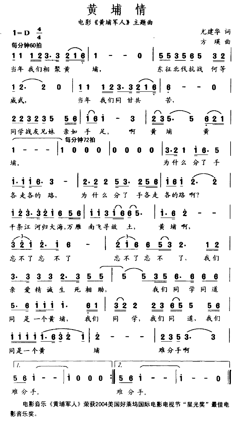 黄埔情简谱-电影《黄埔军人》主题曲简谱