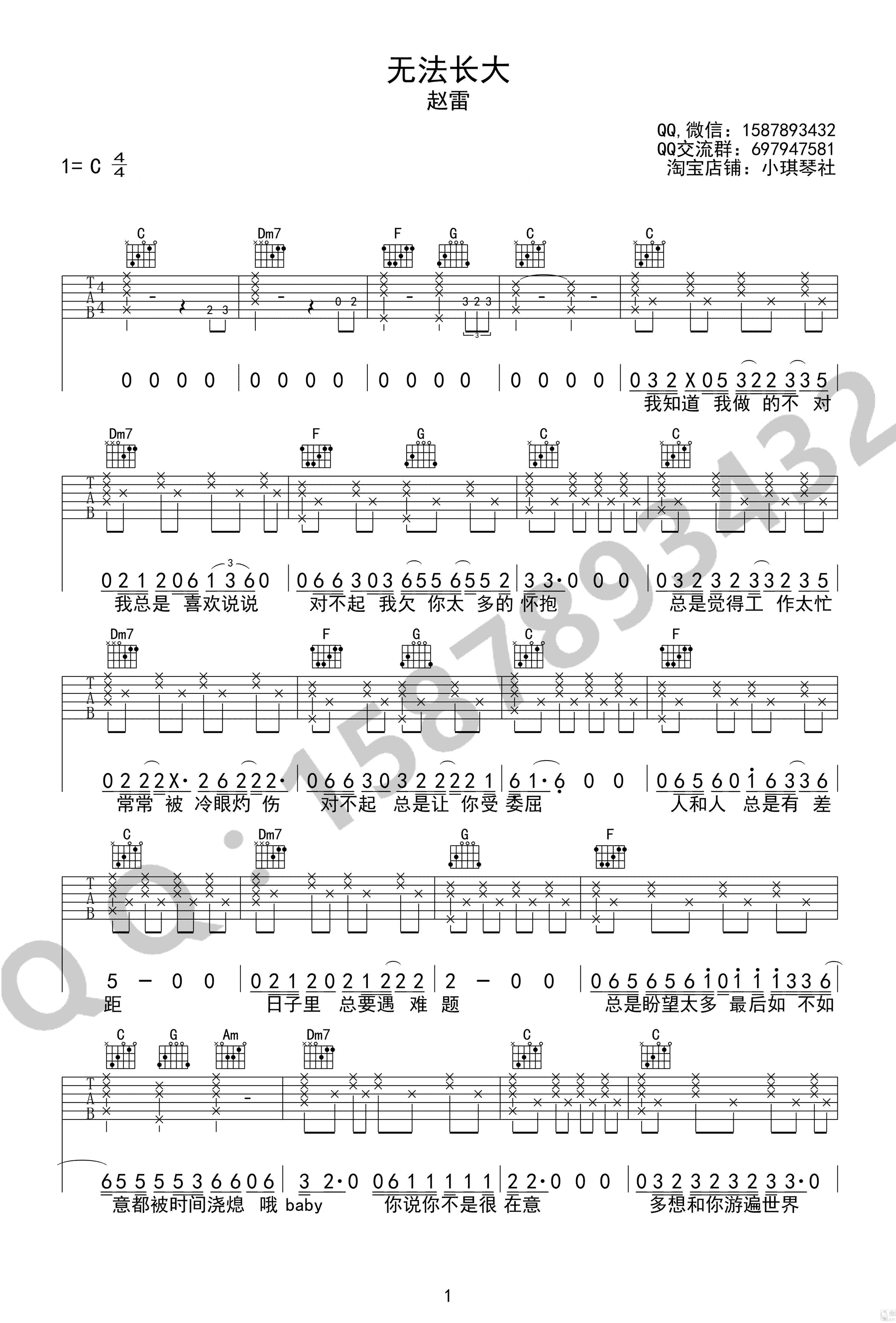 赵雷《无法长大》吉他谱,C调简单版,高清弹唱谱,一首无法长大六线谱,三张图片谱。小琪琴社编配,吉他吧网站上传。 世界总归是你要迈出那一步的,赵雷的这首歌,唱出了很多人的心声,人生百态,五味杂谈,值得我们去思考并做出选择,不想长大的你,一起来弹唱吧。