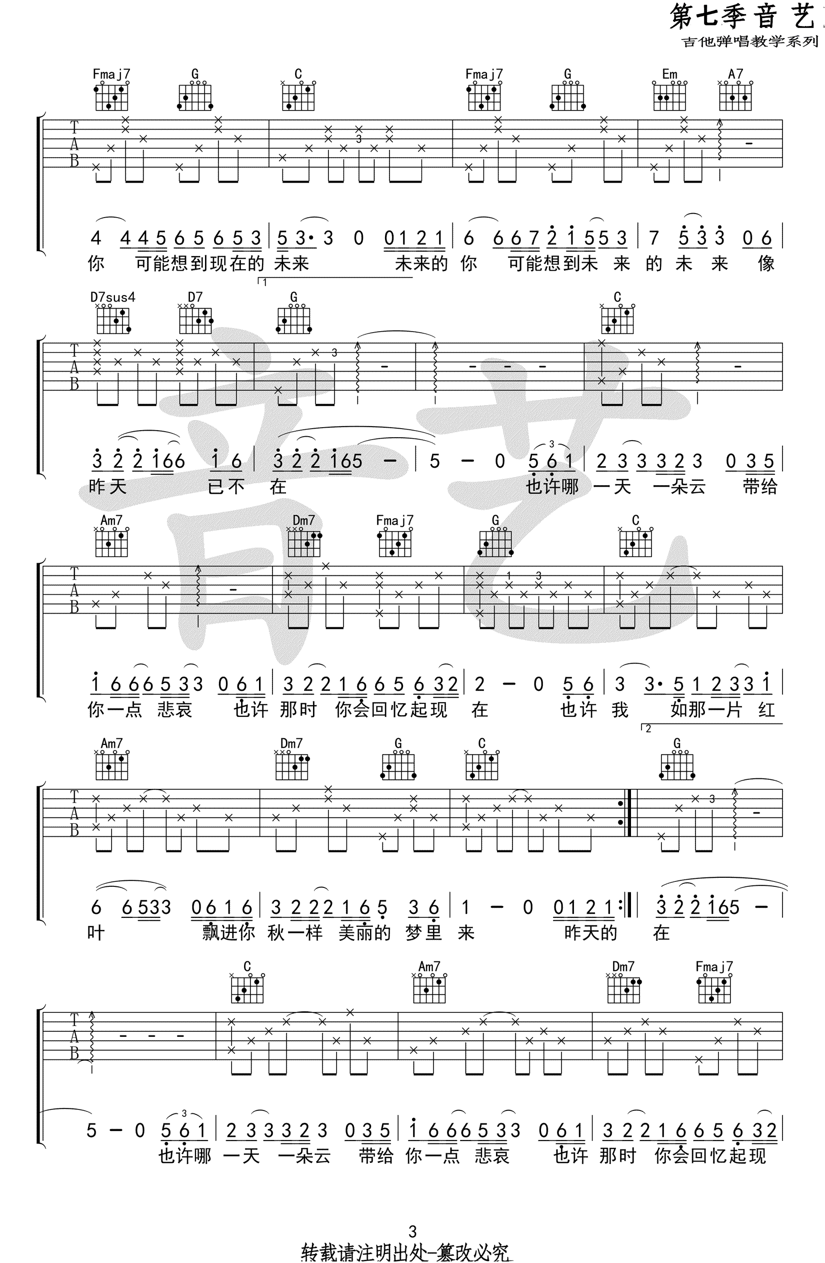 昨天的你的现在的未来吉他谱,好妹妹乐队演唱,收录在《春生》专辑当中的一首抒情歌曲,《昨天的你的现在的未来》六线谱,完整高清版共四张图片谱,感谢艺音出品,吉他吧网站推荐分享。 摇滚猫老师弹唱提示:这首好听的民谣歌曲被易烊千玺翻唱,受到更多的歌迷喜爱,歌曲原声结构其实很简单——1 6 4 5,大家在弹琴的时候不一定按曲谱的指法来,琴友们可以随意改编。