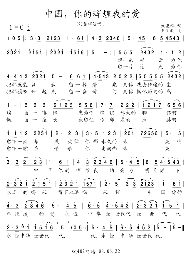 中国,你的辉煌我的爱简谱-刘春梅演唱简谱