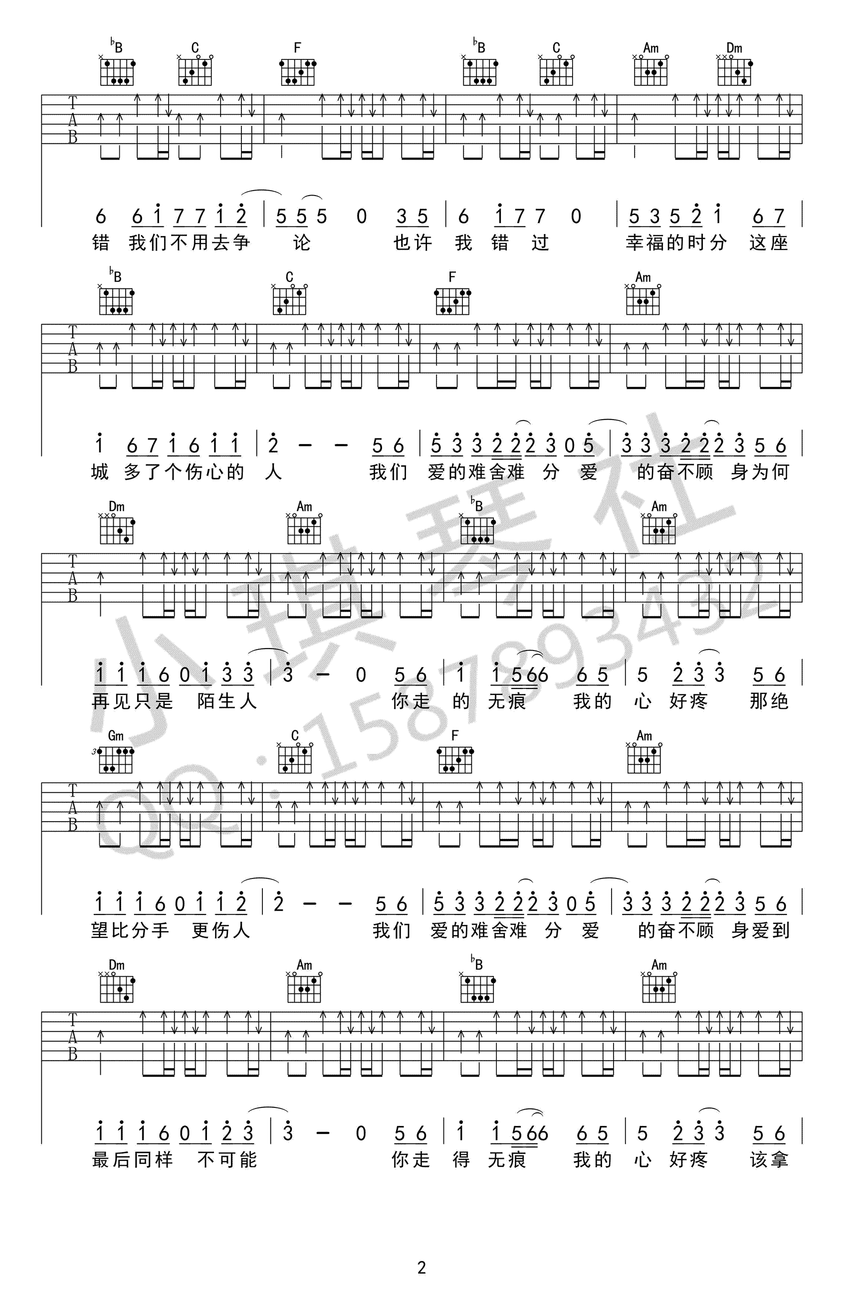 再见只是陌生人吉他谱,庄心妍演唱,一首悲伤的网络情歌,再见只是陌生人吉他弹唱谱,F调吉他高清六线谱,三张图片谱。感谢小琪琴社编配,吉他吧网站上传。 牵着你的手走过大街小巷,走过人潮人海,走过所有美好的过往,在某个沉默的午后散了,散掉了所有的期待和所有的未来。在某个不知名的街角想起,有些难过,难过得有点幸福。哀而不伤的旋律,唱出对往事的感怀和对现在的慰藉。