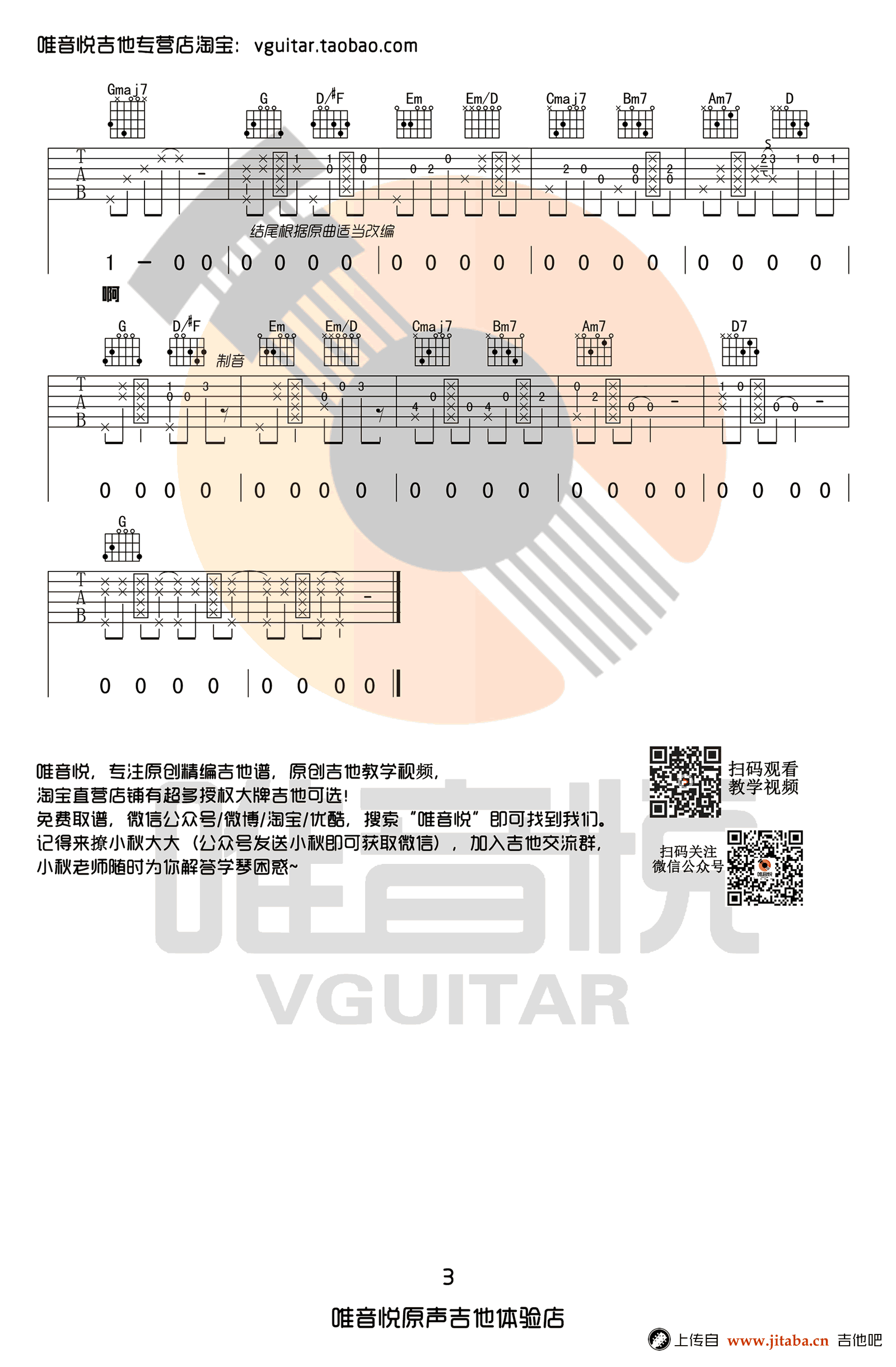 纸短情长吉他谱,完整版编配,烟把儿乐队原创民谣作品,一首网络热门歌曲,纸短情长六线谱,G调指法,高清图片弹唱谱,感谢唯音悦出品,吉他吧网站整理上传。