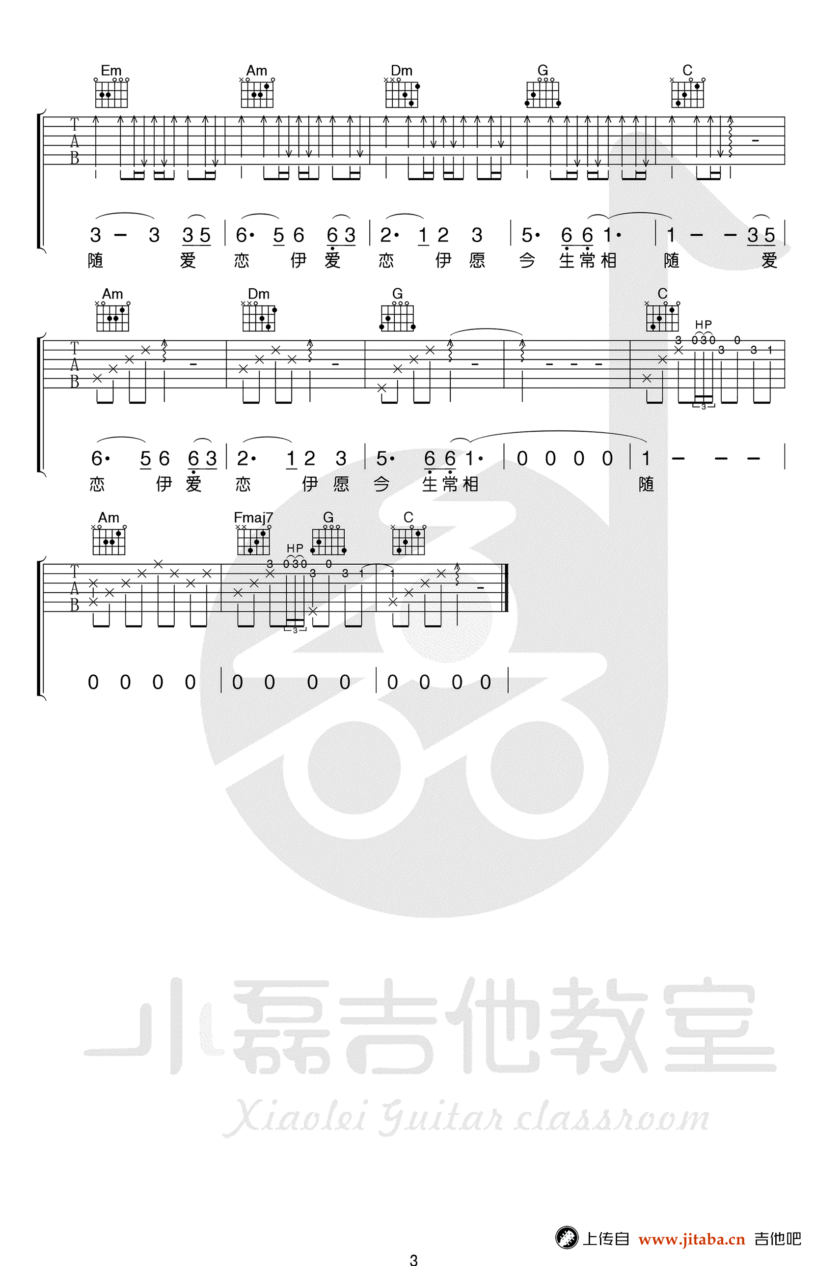 女儿情吉他谱,C调指法编配,电视剧《西游记》插曲,一首最能让人记住的唯美旋律。女儿情六线谱,三张图片谱高清版,感谢小磊吉他出品,吉他吧网站上传分享。 编配说明:这首歌似乎备受民谣爱好者喜爱,很多民谣歌手也都有翻唱过自己的版本!小磊老师制作这个乐谱是自己改编的,并没有参照任何版本,前奏间奏是亮点,后段的扫弦也非常的突出气氛,整体难度不高,大家可以仔细对照视频和乐谱学习起来!难度:6级