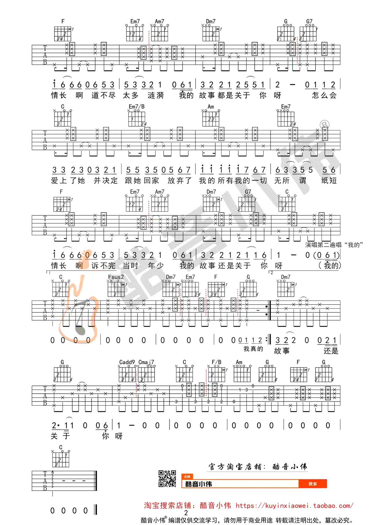 纸短情长吉他谱,烟把儿的一首热门歌曲,纸短情长六线谱,C调中级版,变调夹推荐,男生2-4品,女生七品。感谢酷音小伟出品,吉他吧网站曲谱及教学视频同步上传分享。
