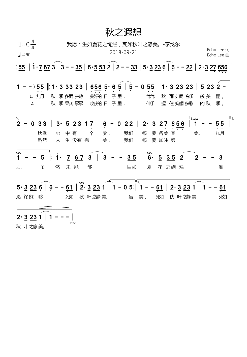 秋之遐想简谱-EchoLee词/EchoLee曲
