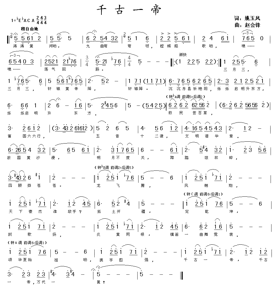 千古一帝简谱-姚玉凤词 赵会锋曲