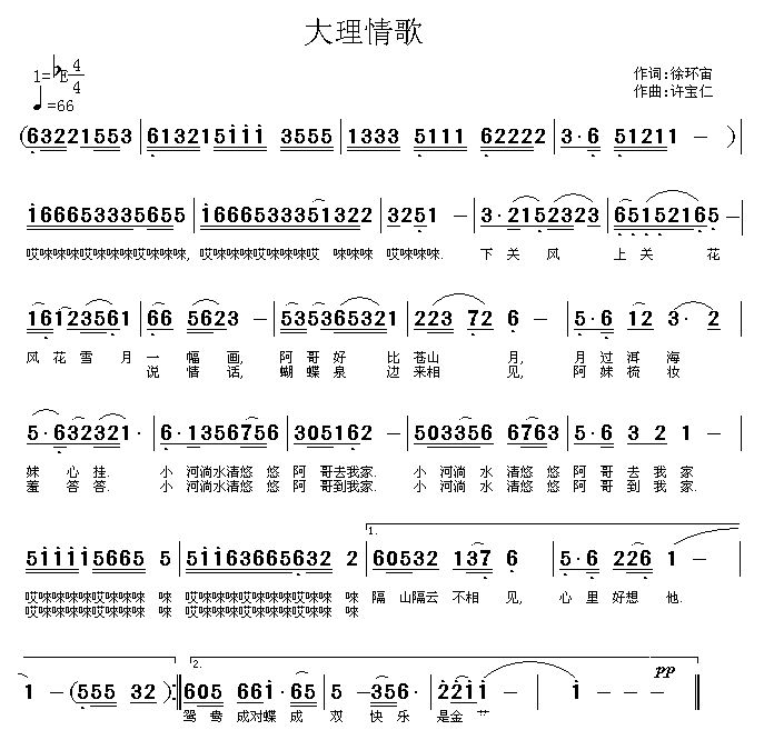大理情歌简谱-徐环宙词 许宝仁曲