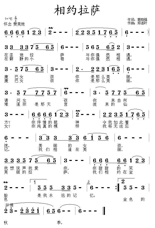 相约拉萨简谱-郭晓强词 郑连叶曲