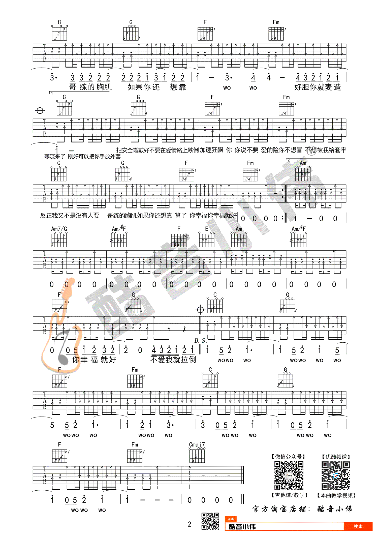周杰伦《不爱我就拉倒》吉他谱,C调简单版+中级版编配,男生变调夹夹0-2品,女生4-6品,两个版本适合不同需要的琴友们,感谢酷音小伟出品,吉他吧网站上传推荐。随谱附上小伟老师带给大家的《不爱我就拉倒》吉他弹唱教学视频,大家参照讲解示范学习。