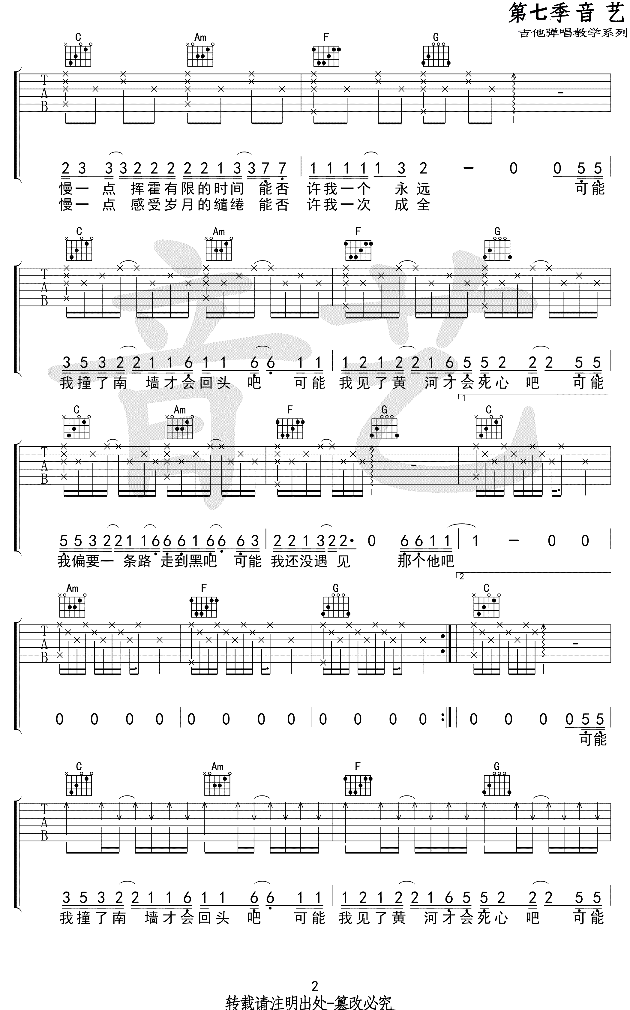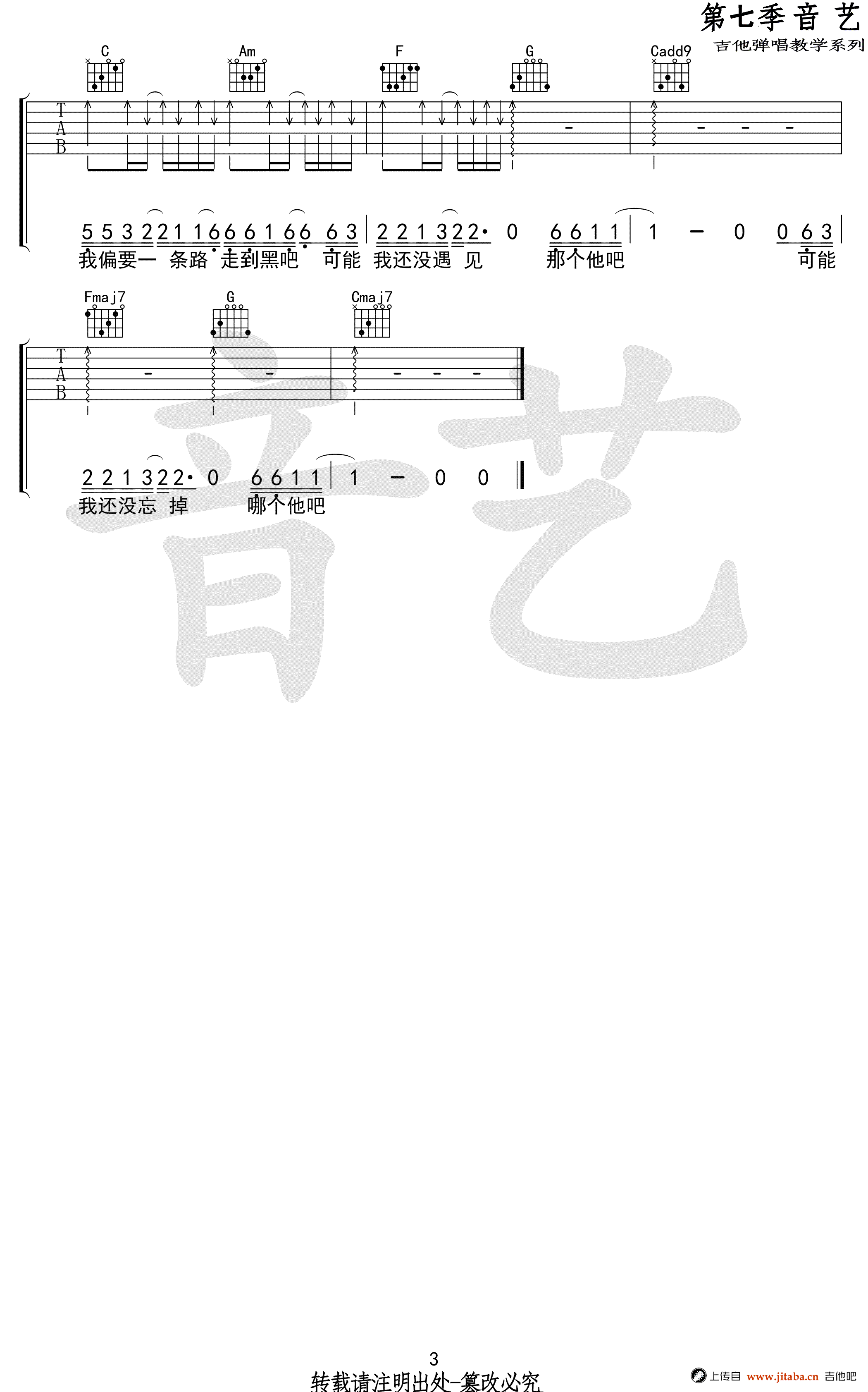 木小雅《可能否》吉他谱,C调指法原版编配,又一首火起来的抖音歌曲,来自于独立音乐人木小雅的原创作品,可能否六线谱,高清图片谱,感谢音艺吉他出品,吉他吧网站上传。 这首歌带着一种淡雅的小情绪,加上木小雅干净透彻的声音,你很容易被感染。歌词寓意也十分深刻,在网上引起很多人的共鸣和热议。也许我们会错过太多可能,可幸运的是,我们有着自己选择的权利。