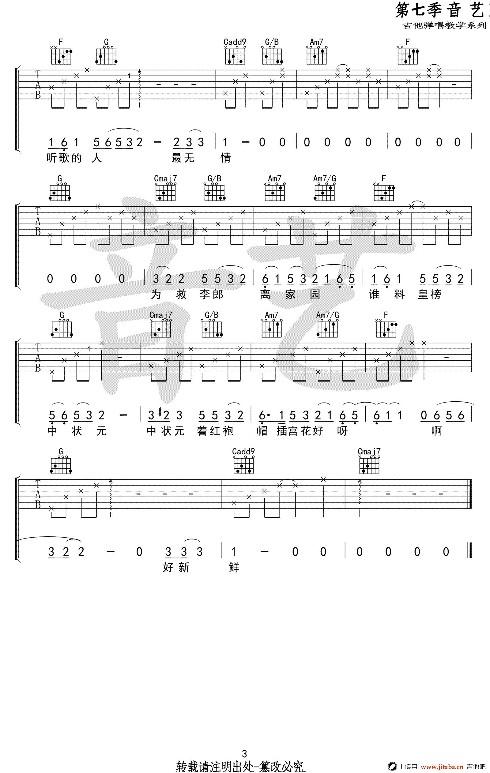 刘润洁《牡丹亭外》吉他谱,原调#C,选用C调指法,变调夹夹一品。台湾歌手陈升词曲原唱,融合了《女驸马》与《牡丹亭》中国古代戏剧内容和风格的歌曲,牡丹亭外六线谱,高清弹唱图片谱,感谢艺音编配出品,吉他吧网站上传。 黄粱一梦二十年,依旧是不懂爱也不懂情。摇滚猫老师:刘润洁的版本最好弹,大家在弹唱的时候,可以根据自己的嗓音来选择合适的调!很有故事的一首歌曲,但是不好唱! 个人最喜欢任柏儒的版本。