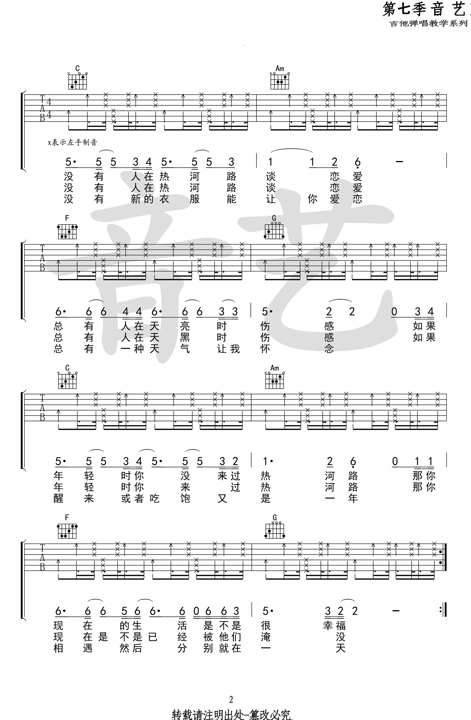 热河吉他谱,李志演唱,C调指法原调编配,热河六线谱,高清弹唱图片谱,感谢音艺出品,吉他吧网站上传。