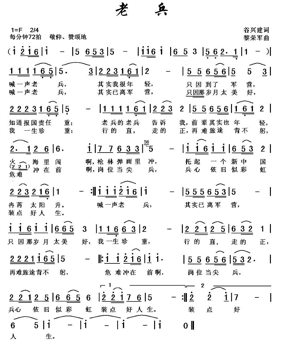 老兵简谱-谷兴建词 黎荣军曲简谱