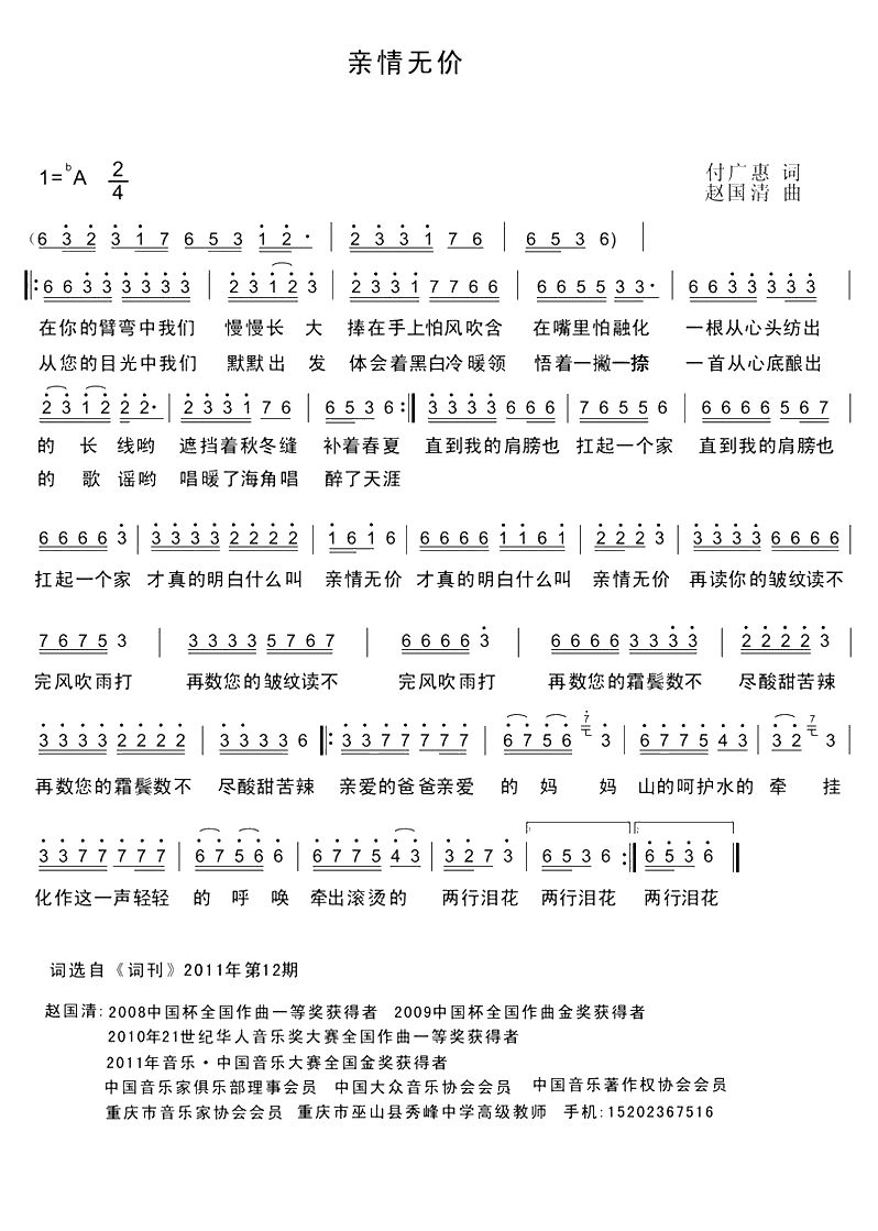 亲情无价简谱-付广惠词 赵国清曲简谱