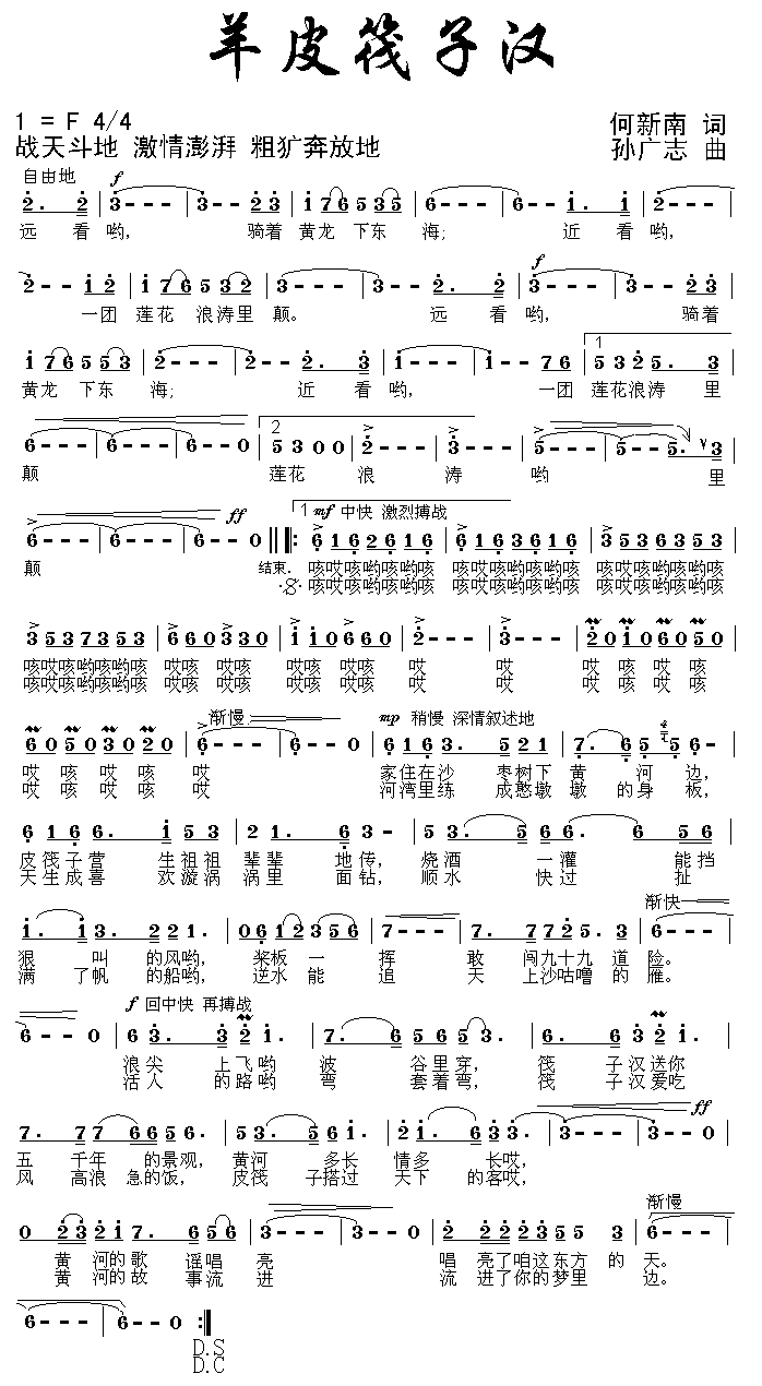 羊皮筏子汉简谱-何新南词 孙广志曲简谱