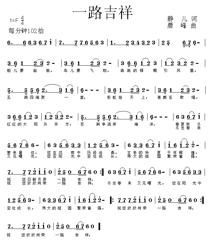 一路吉祥简谱-静儿词 晨峰曲简谱