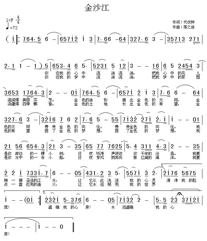 金沙江简谱-代伐钟词 居之浩曲简谱