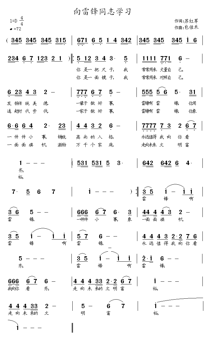 向雷锋同志学习简谱-苏红军词 包佳禾曲