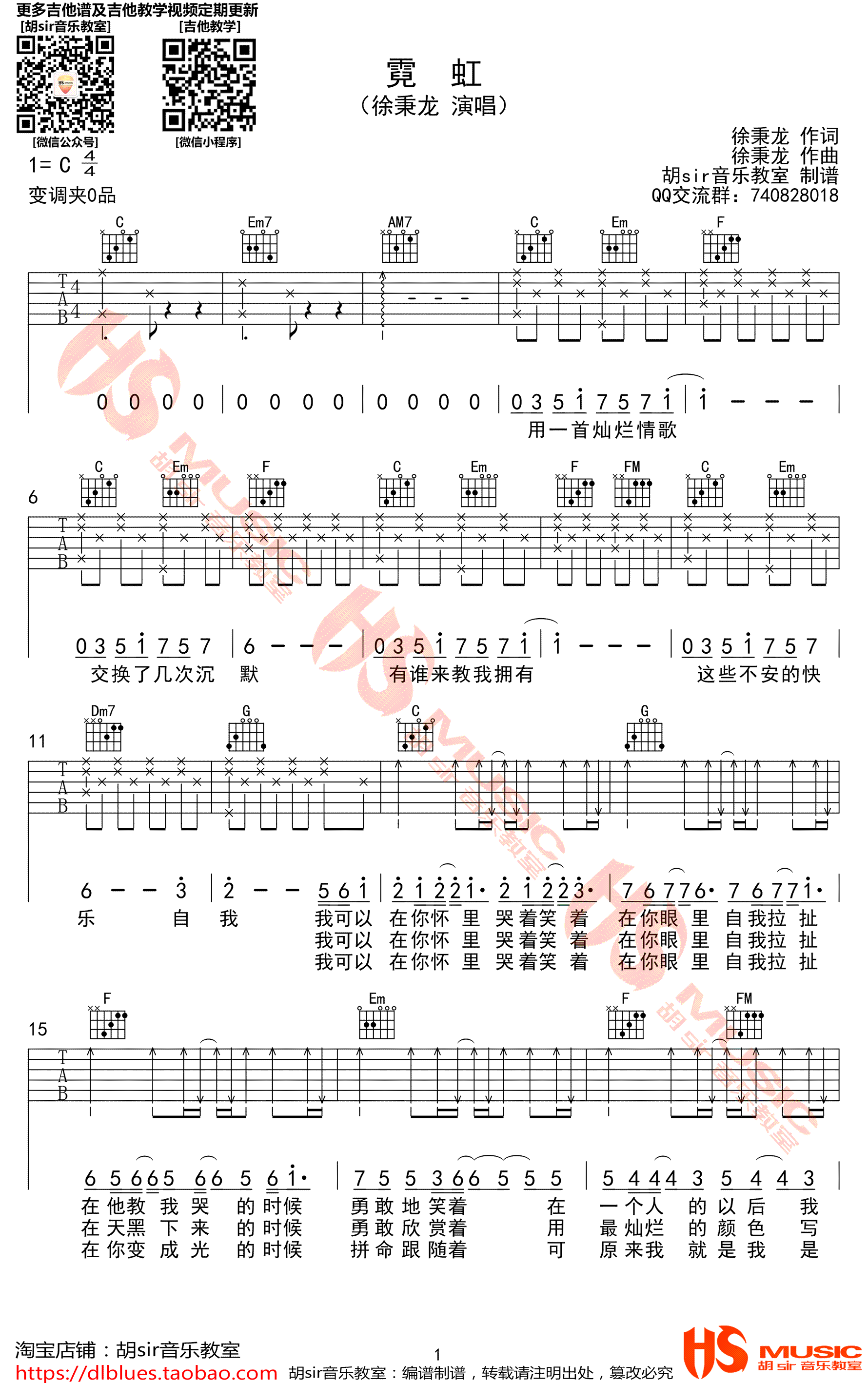 霓虹吉他谱,C调指法弹唱谱,徐秉龙演唱的新歌,尝试新的风格的徐秉龙,新的感觉也是很不错。霓虹六线谱,高清图片谱,感谢胡sir音乐教室出品,吉他吧网站上传分享。 这世间有千万般的好,都在万千广厦霓虹中,都在你的眉宇间,你只是经过霓虹深处,便成为我三旬的理想。