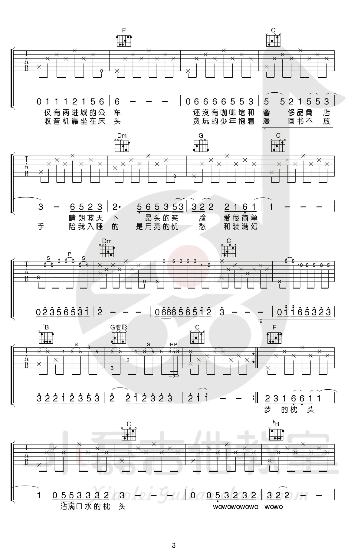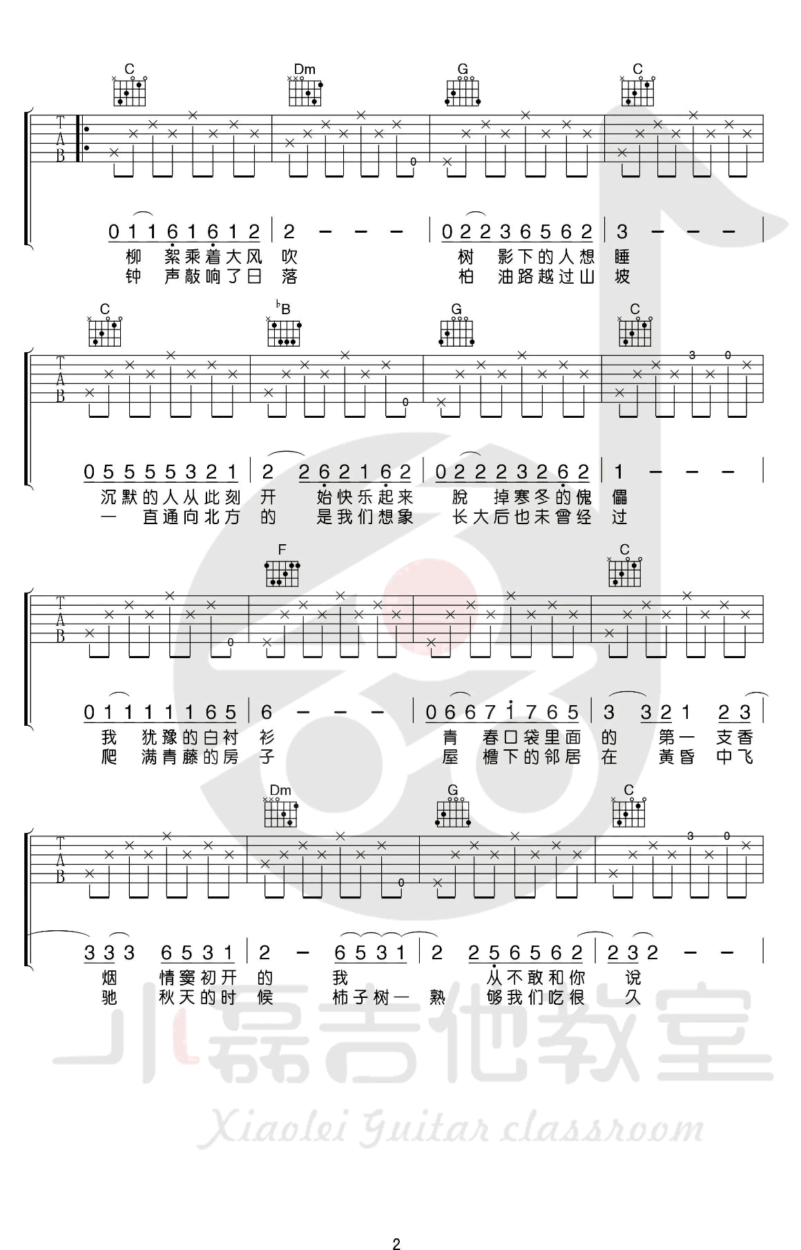 《少年锦时》吉他谱,赵雷的一首原创民谣歌曲,原调D,选用C调指法,变调夹夹二品。少年锦时吉他六线谱,完整版共五张图片谱例,感谢小磊吉他出品,随谱附上配套吉他教学,喜欢赵雷这首歌曲的琴友们参照老师的示范讲解练习起来。编配说明:对于初学者来说,这首歌可能会稍微有些小难度,但是老师通过改编把这首歌的色彩和前奏的那些小旋律也保留了下来。间奏整体算是还原度90%以上,因为间奏是双吉他的,这里完成了在一把吉他的版本里,是完整的把间奏的旋律呈现的很完美的一个编排。后段采用扫弦,托起整体歌曲的这个氛围,所以说这首歌整体来说比较丰富,推荐大家去学习。