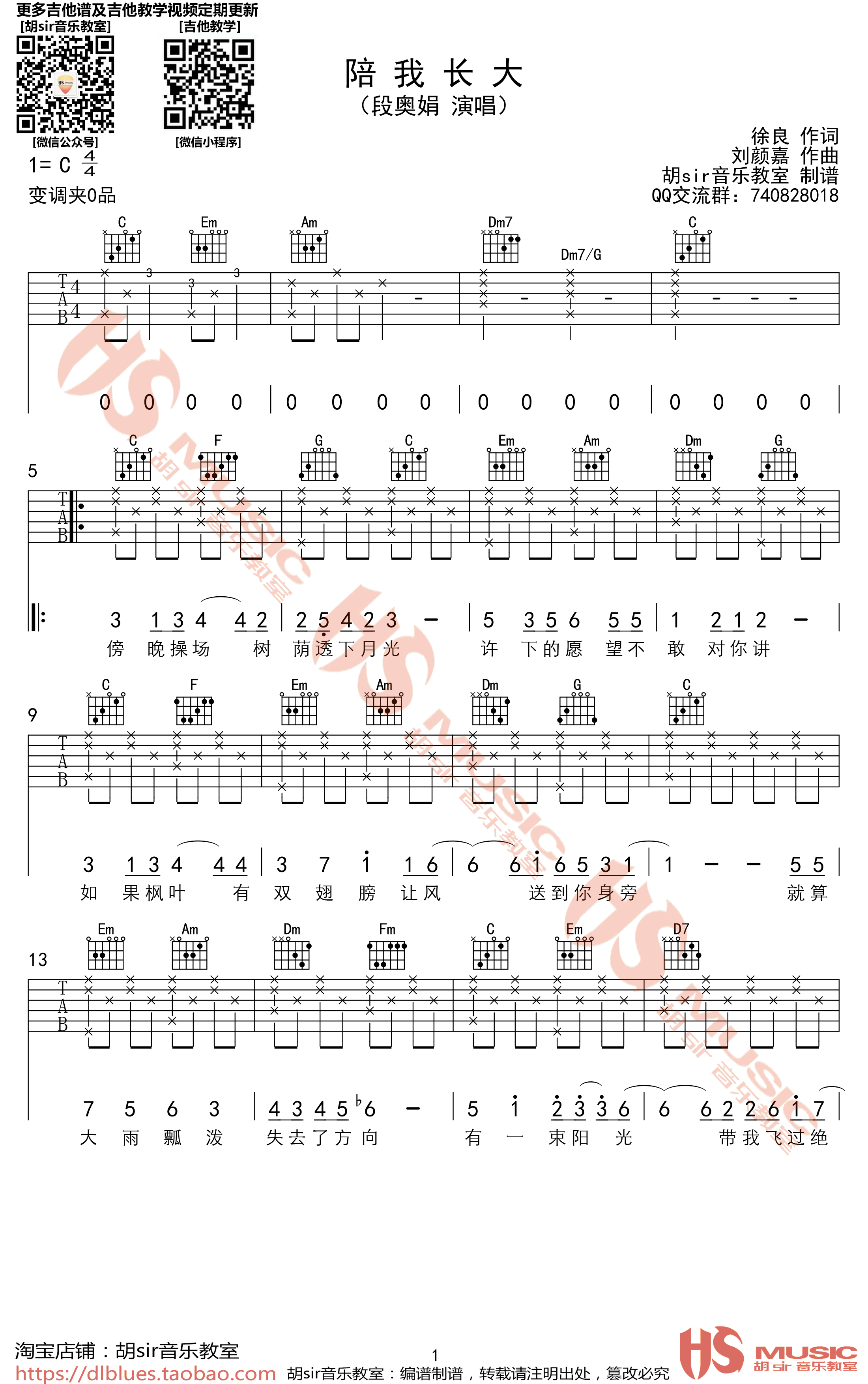 段奥娟《陪我长大》吉他谱,C调指法编配,《快把我哥带走》电影主题曲,陪我长大六线谱,吉他弹唱图片谱,感谢胡sir音乐教室出品,吉他吧网站上传分享。 火箭少女101段奥娟娓娓道来一段青春回忆里关于爱与力量的故事。愿倾听的你,重新拾起年少时光里,有人陪伴在左右的勇敢。