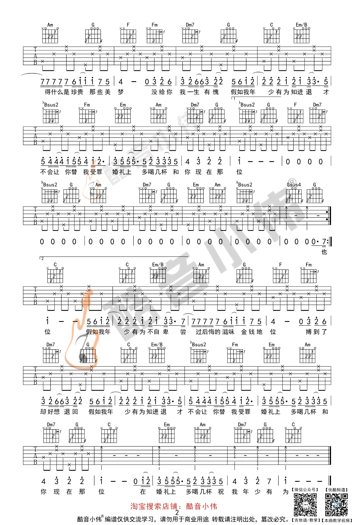 李荣浩《年少有为》吉他谱,C调简单版,变调夹推荐男生5-7品,女生1-3品,年少有为吉他弹唱谱,酷音小伟编配出品,吉他吧网站上传。 一首典型的浩式情歌,诉说一段平凡爱情里的刻骨铭心,戳中了很多人的泪点,引起了无数人的回忆。曾经的我什么都没有,只有你, 然而现在我什么都有了,却没有了你。一首伤感情歌,是否也想起了曾经陪着自己的那个人?