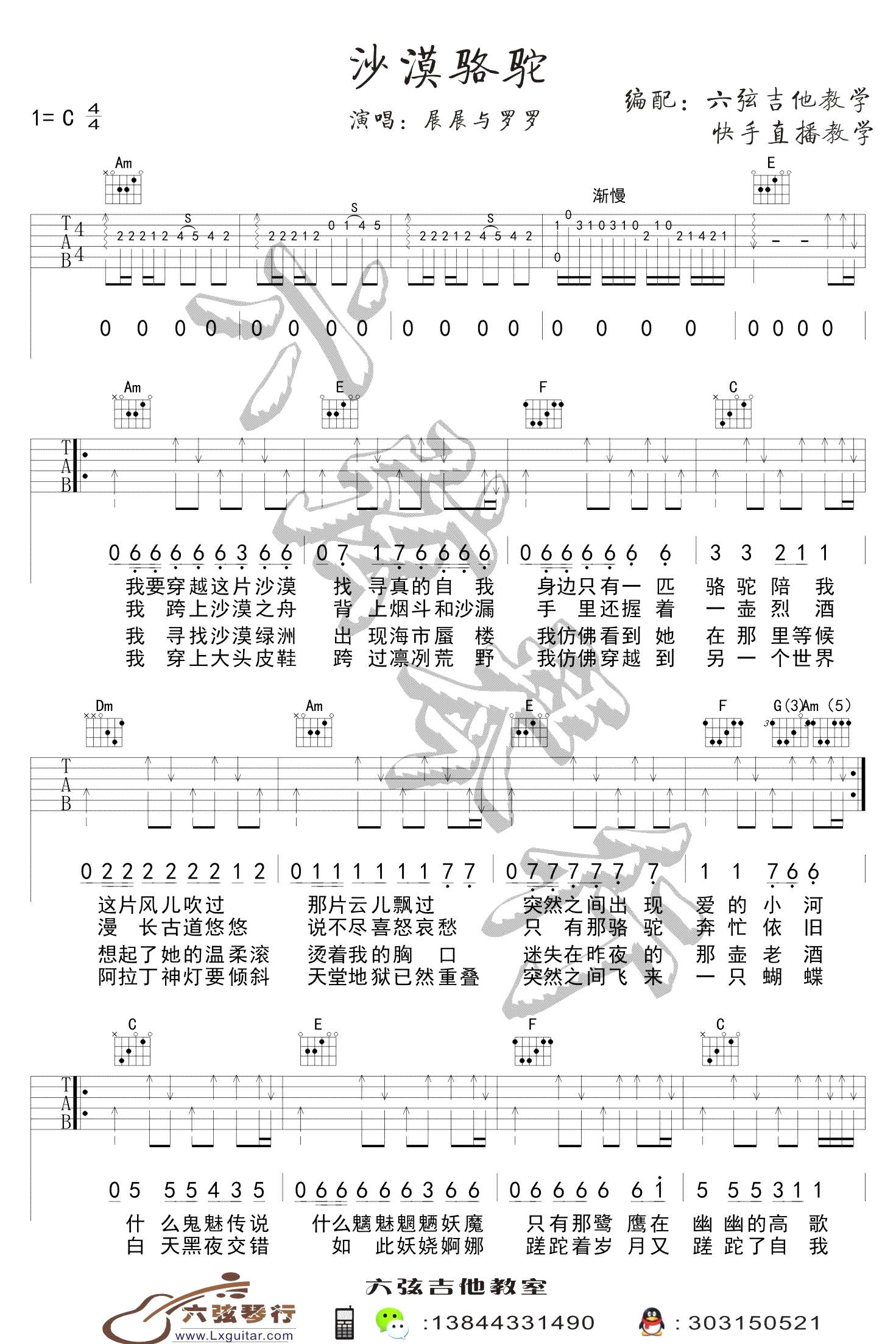 沙漠骆驼吉他谱,C调弹唱谱,展展与罗罗演唱,沙漠骆驼六线谱,高清图片谱,感谢六弦吉他出品,吉他吧网站上传。 抖音火了很多以前的冷门歌曲,比如这首展展与罗罗的《沙漠骆驼》,带感的节奏,洒脱不羁的嗓音,浓浓的西域风格加上摇滚和流行音乐,让人耳目一新,让它在各平台点击量飙升。