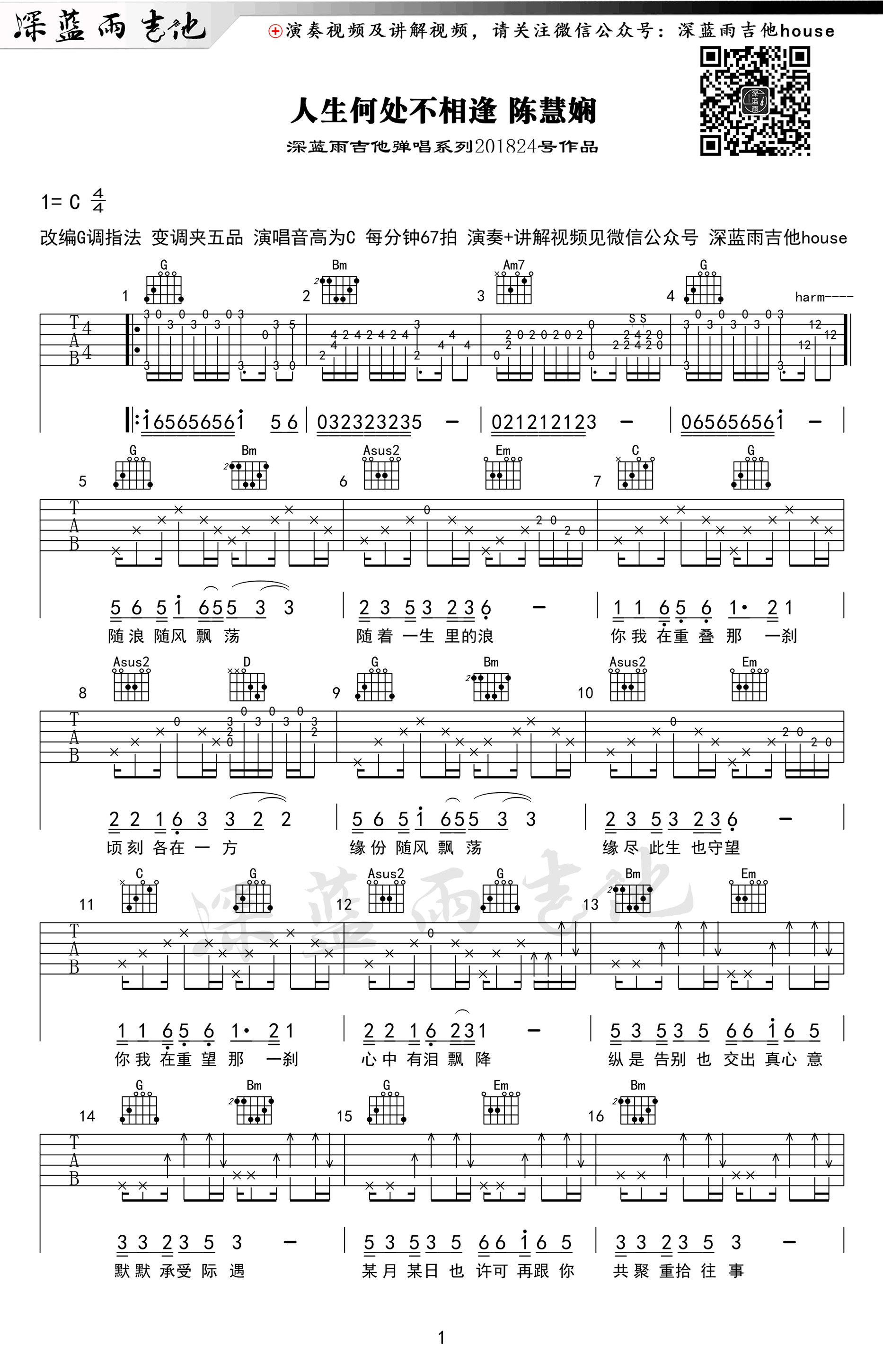 陈慧娴《人生何处不相逢》吉他谱,原调C,选调G,变调夹夹五品,一首经典的粤语歌曲,人生何处不相逢六线谱,深蓝雨吉他编配,随谱附上配套吉他弹唱教学视频。人生就是一场又一场的相逢,驿路策马,长亭短憩,一回眸一驻足 ,可能是一场相逢。而生活最撩人心魄的是,你永远不知道,在下一刻,在下一个地方,会有哪一个人,不早不晚 不远不近,在等着你......