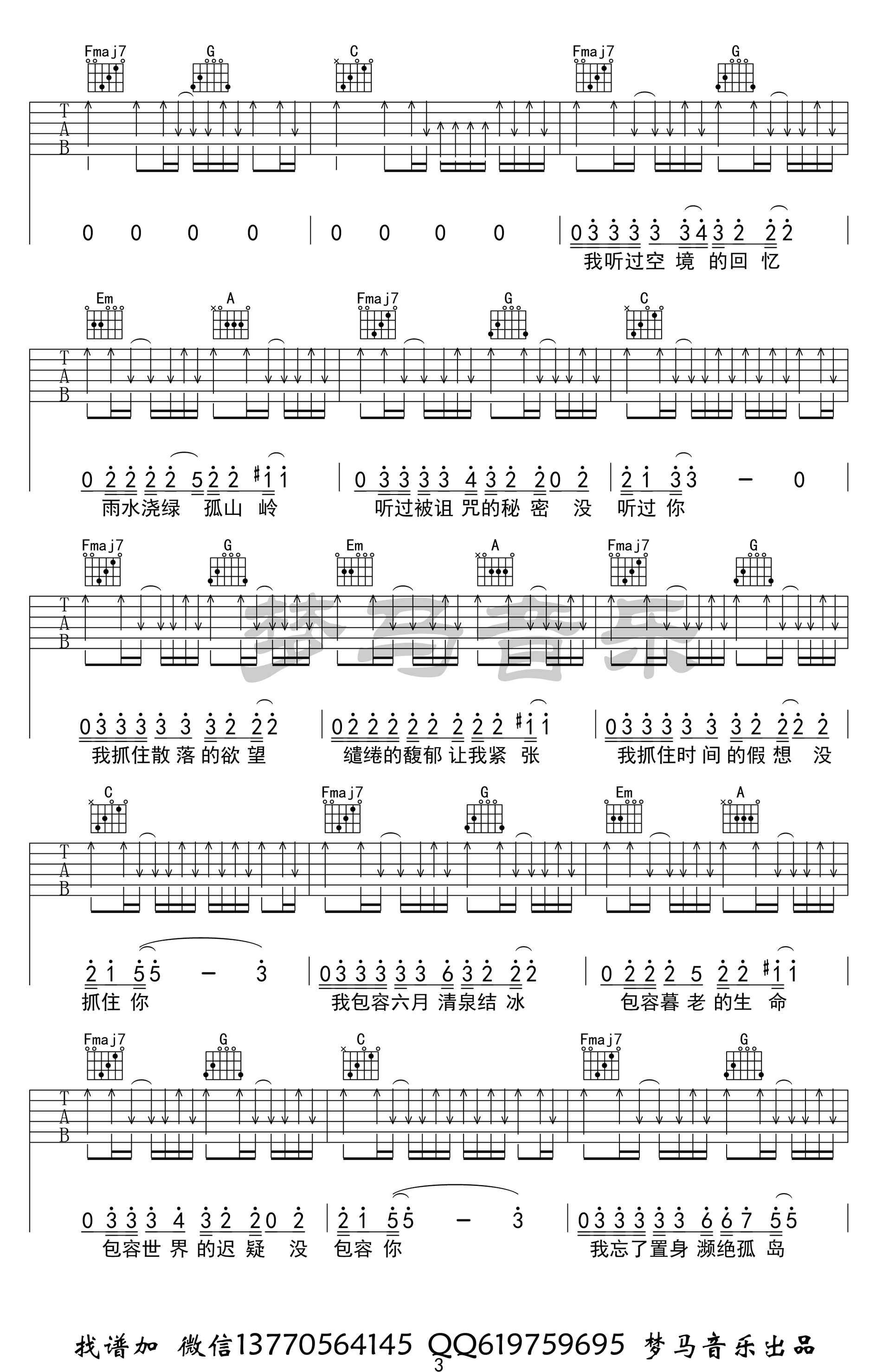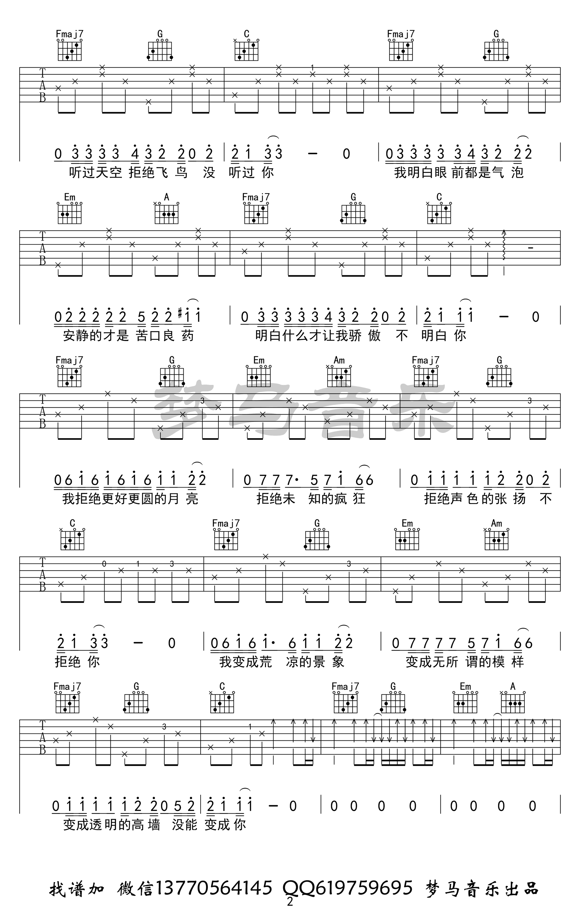 奇妙能力歌吉他谱,陈粒演唱的一首民谣代表歌曲,奇妙能力歌六线谱,C调指法,高清弹唱谱,共四张图片谱,感谢梦马音乐编配出品,吉他吧网站上传分享。夏祯阳老师要点讲解:这首歌我花了很多时间在编曲上,就是因为原曲是用吉他弹的,作为一个音乐创作人,我必须跟原来的不一样。不然就是抄袭。抄袭的事情我从来不做。歌曲弹和唱都没有难度,就是歌曲的节奏比陈粒更快更紧凑。然后谢老师在演唱上面也加入了一些自己的想法,希望大家喜欢!