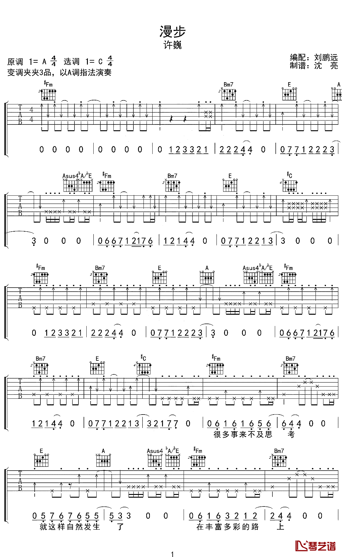 许巍《漫步》吉他谱_六线谱_弹唱谱