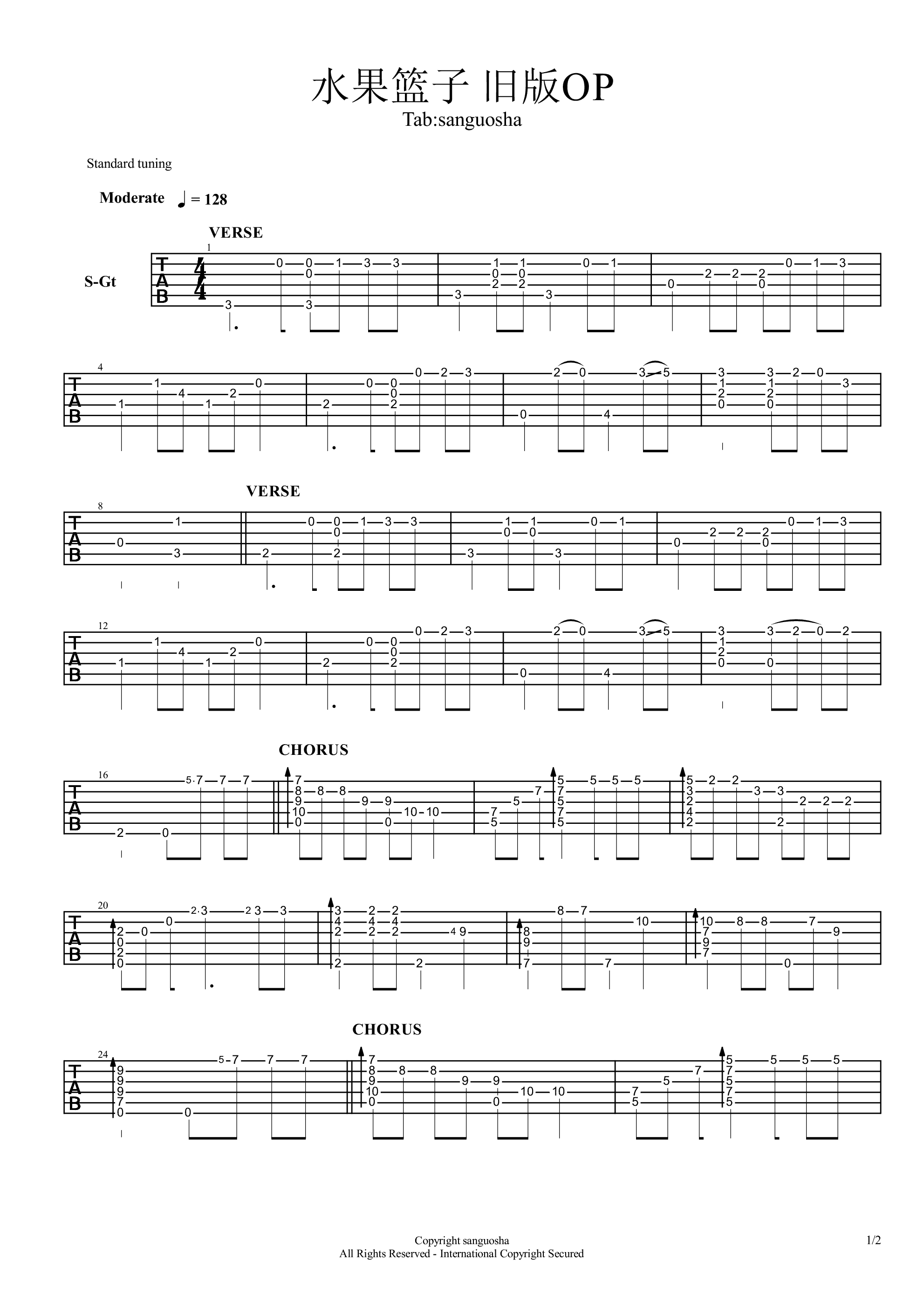 动漫游戏_水果篮子_旧版OP_吉他谱_指弹谱