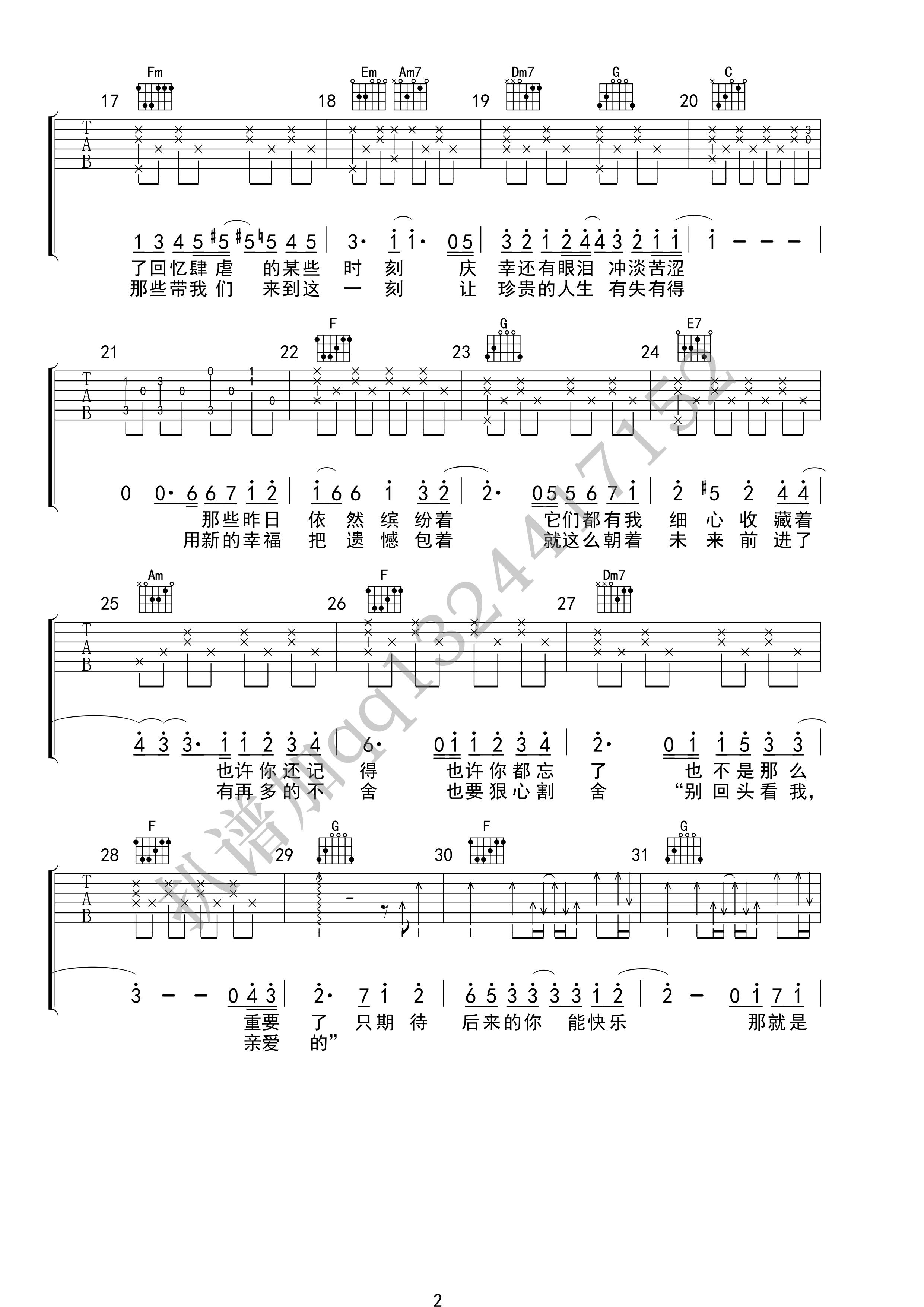 一首好听的让人深思的歌曲《后来的我们》,由台湾乐团五月天演唱。作为摇滚乐队能唱出这么深情的歌真的让我有点小意外,他们的音乐风格有点偏民谣风,略带那种年少轻狂的调调,给他呈现的是清新健康的青春活力,传递的是一种正能量。下面就一起来学学看《后来的我们》吉他谱。