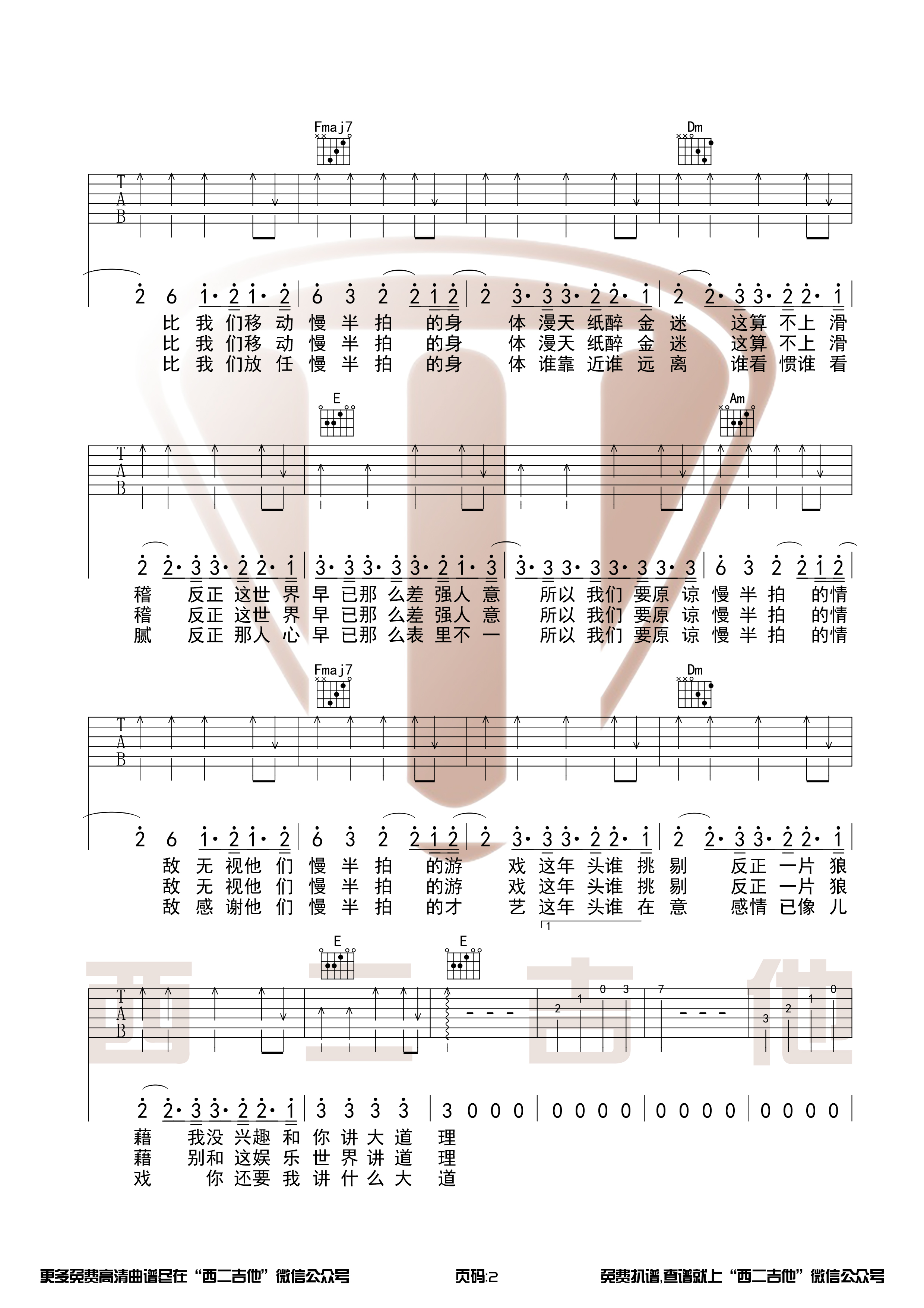 歌曲的立意独特而深远,为了呈现歌曲所要传递的态度,《慢半拍》采用Band Sound编制及些许复古的70s Country - Guitar音色都让整首歌回归根源性音乐方向,附加上了超越时代记忆的人生感知力。鲜活的SOLO演唱,推动着歌曲之于内心世界返璞归真的情感输出。
