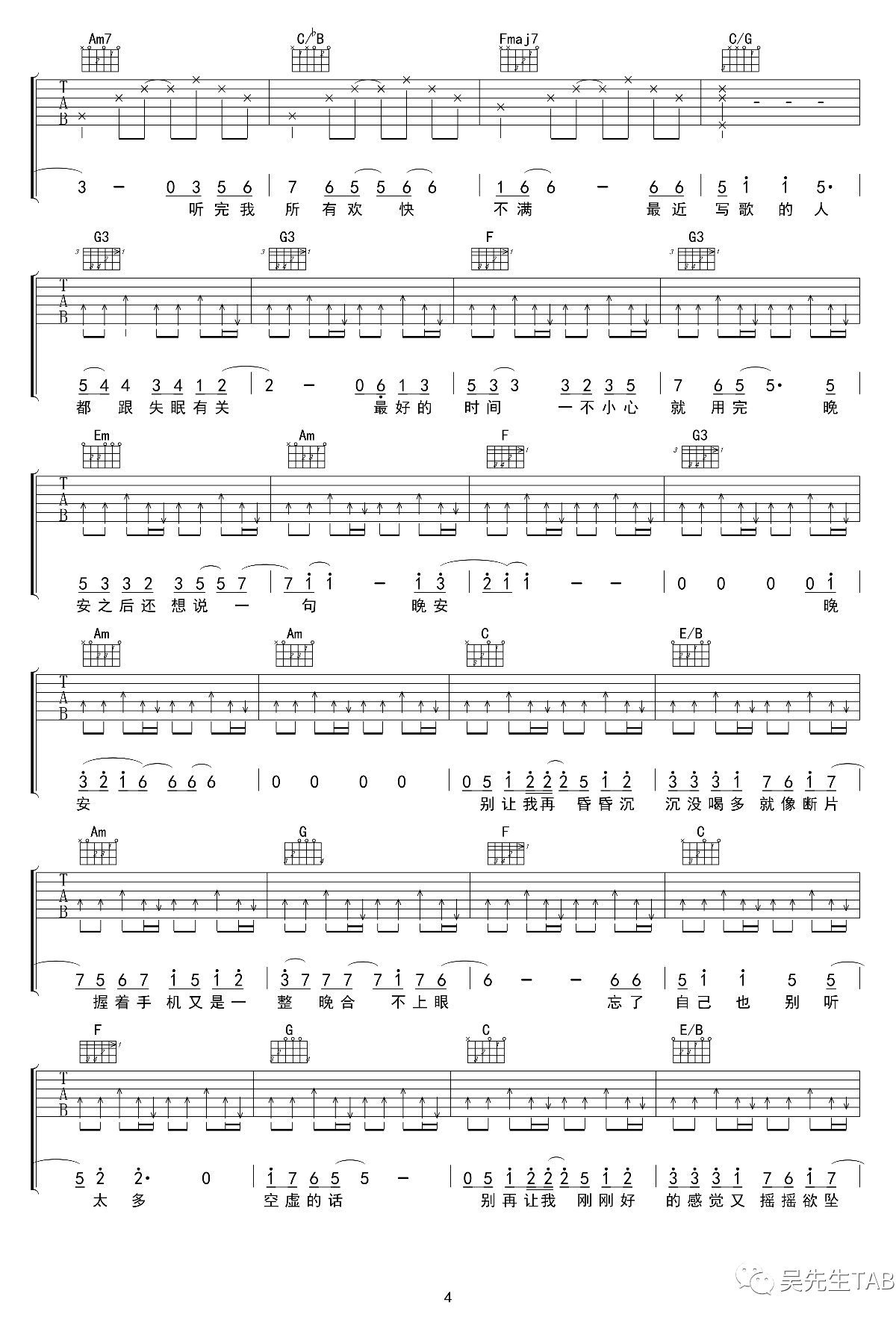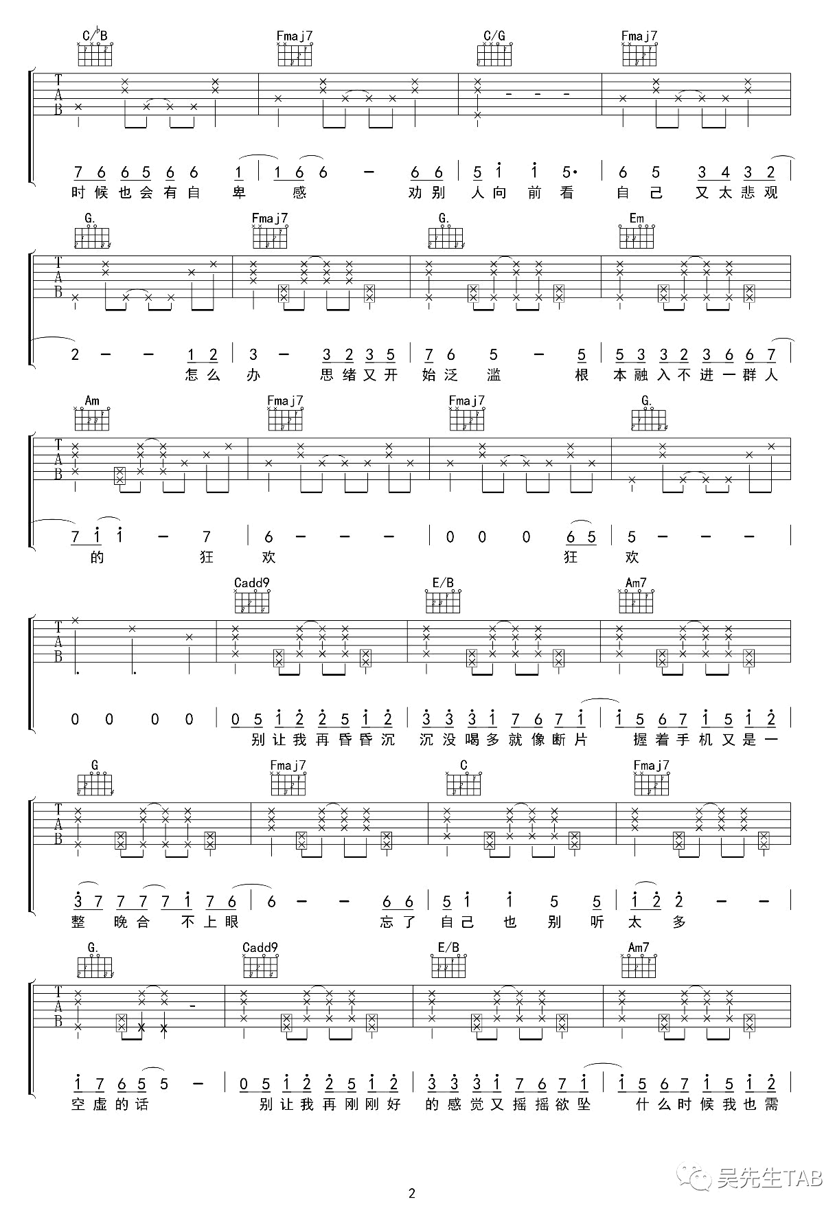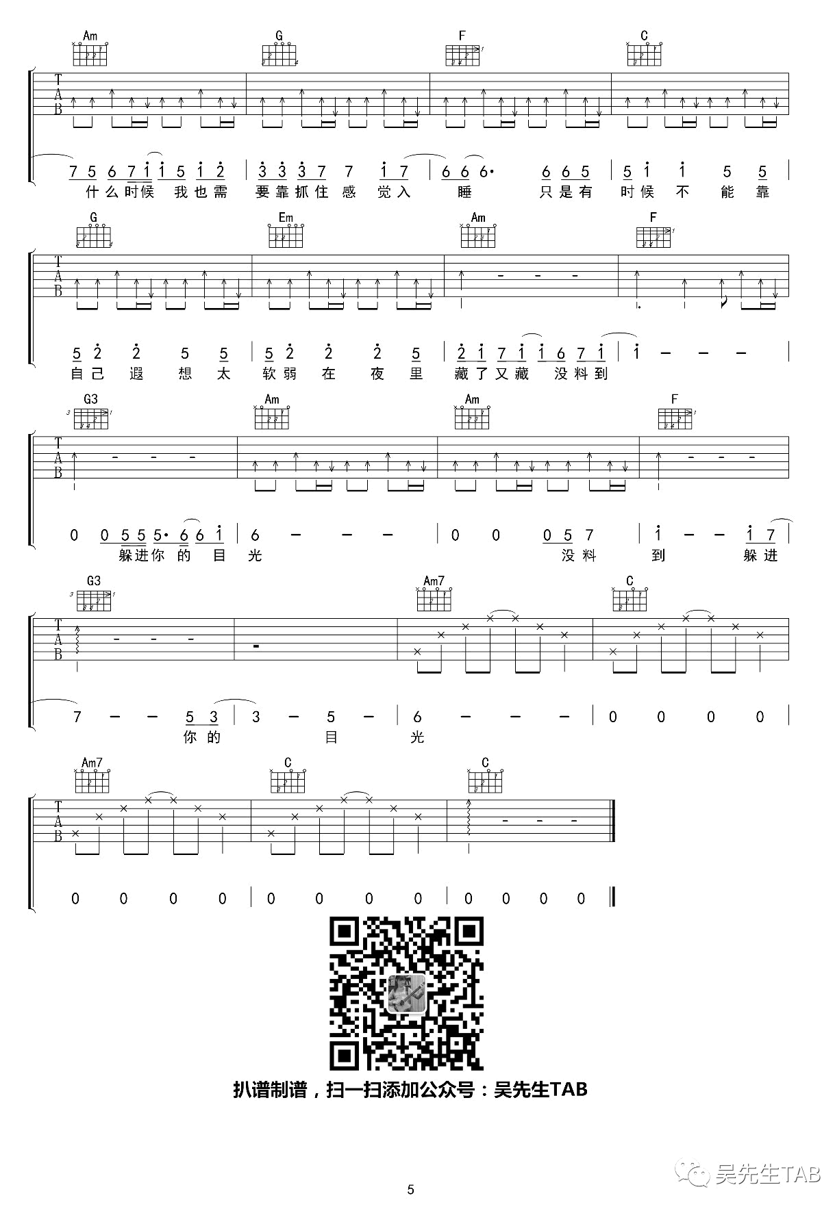 藏进夜里躲在光下吉他谱,焦迈奇演唱的一首民谣歌曲,C调指法弹唱,藏进夜里躲在光下六线谱,完整高清版,共五张图片谱例,感谢吴先生编配。