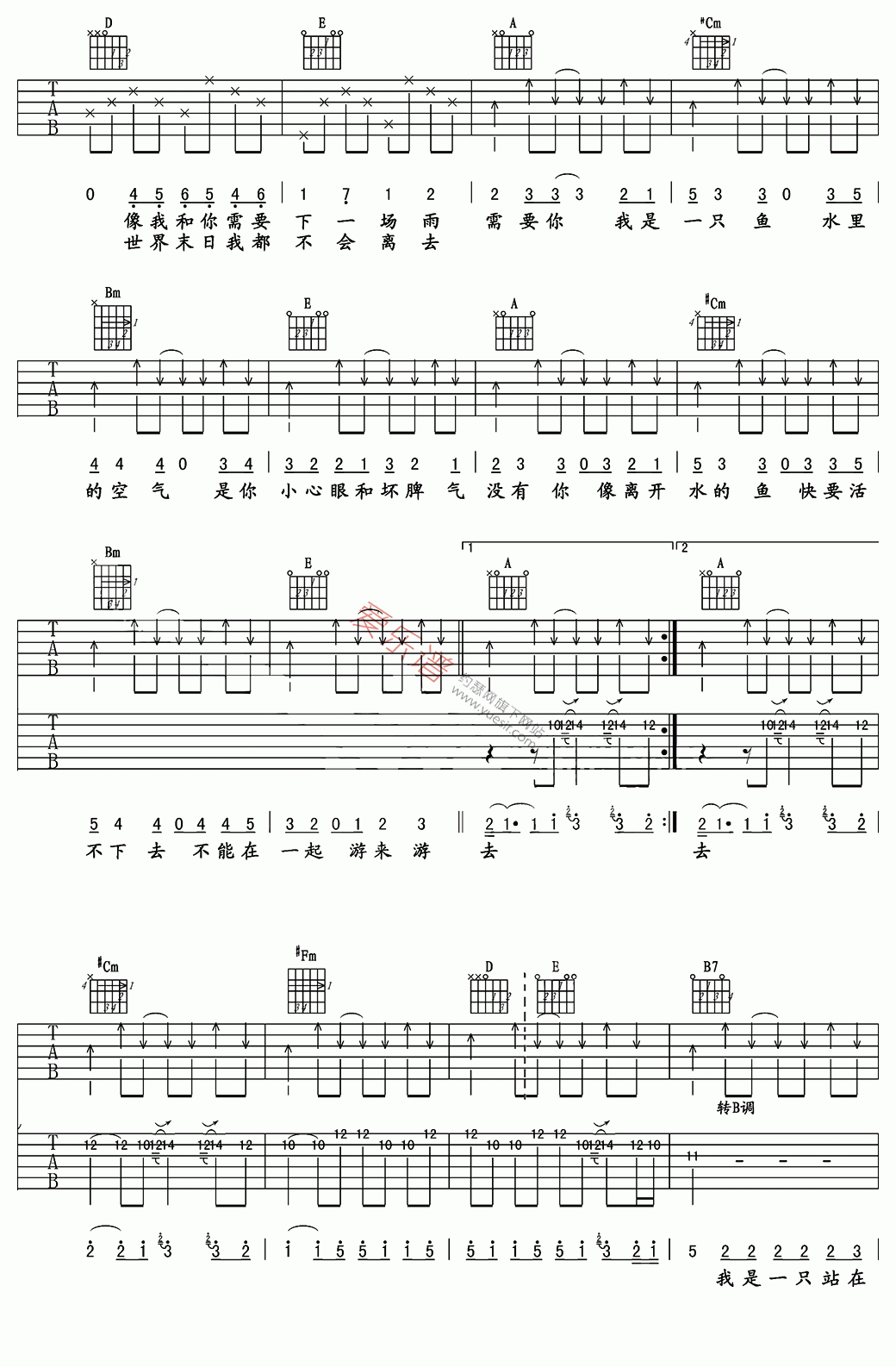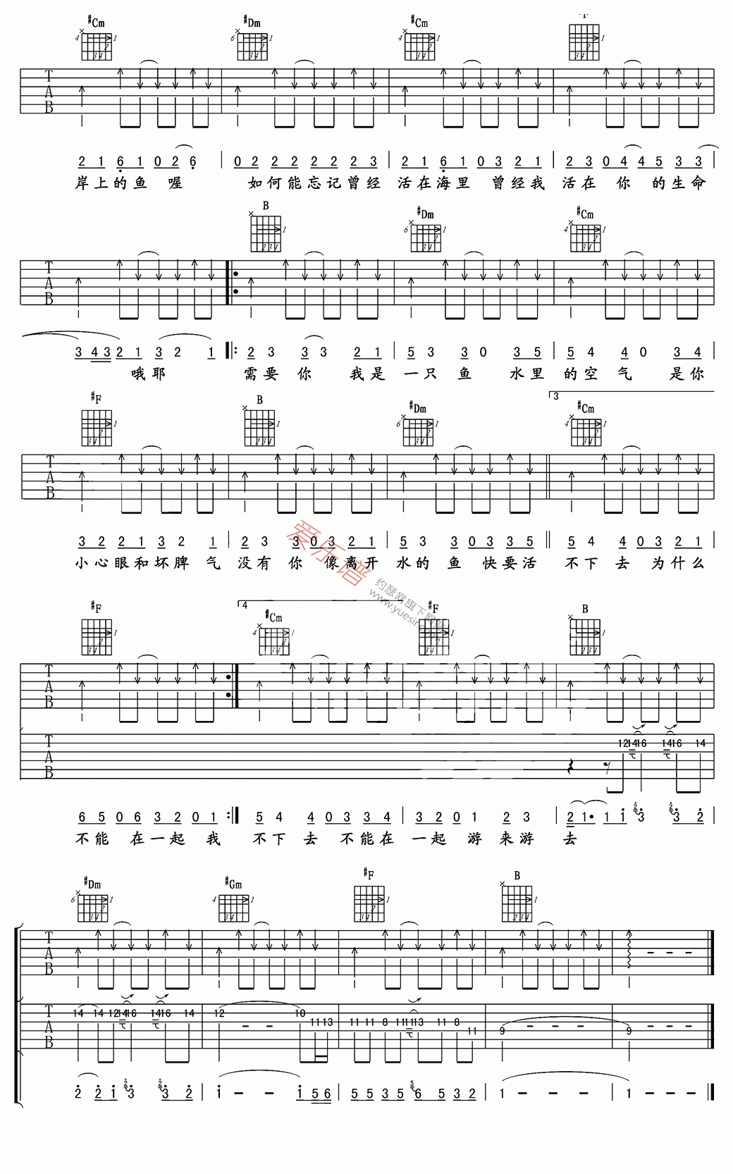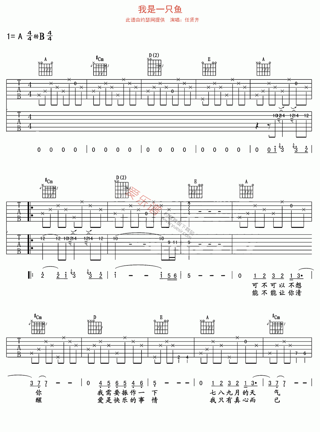 流行弹唱_任贤齐《我是一只鱼》吉他谱_弹唱谱_六线谱