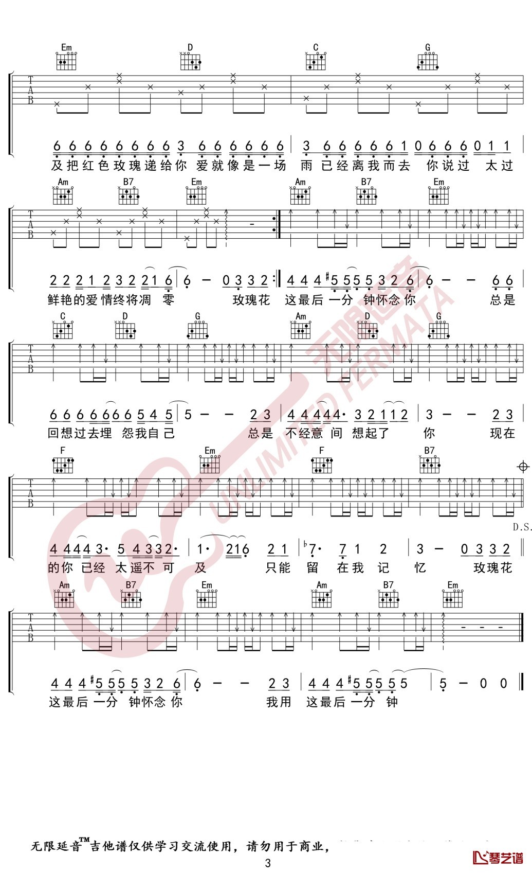 玫瑰花的葬礼吉他谱