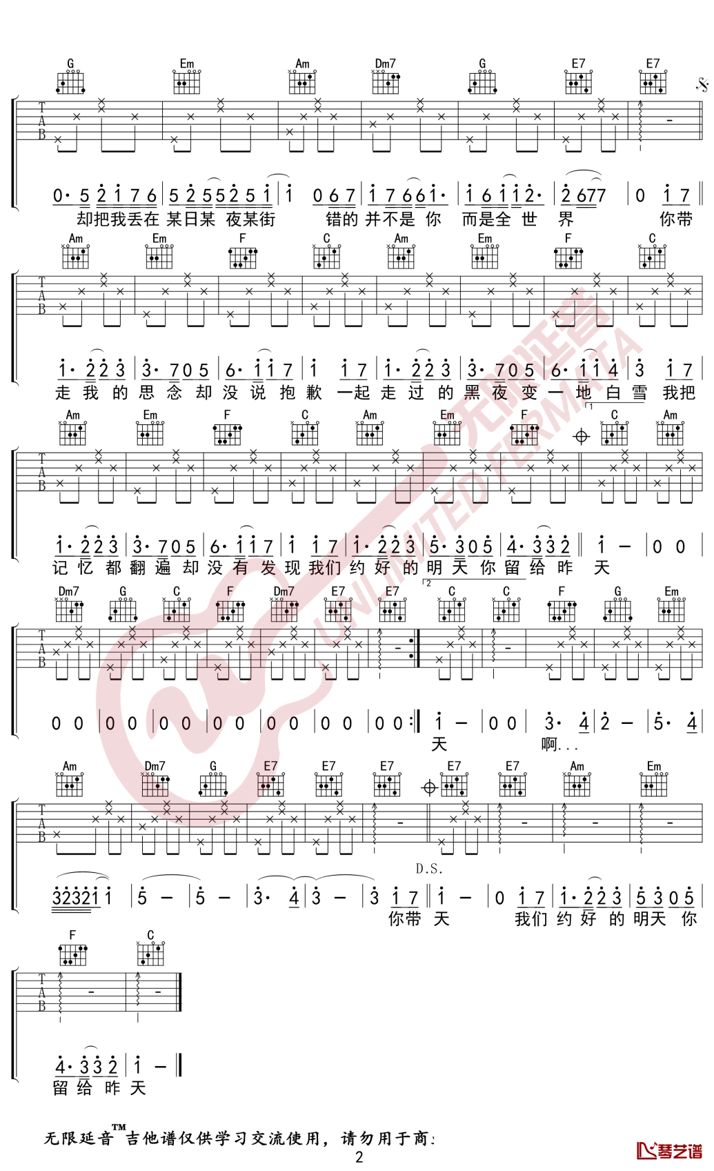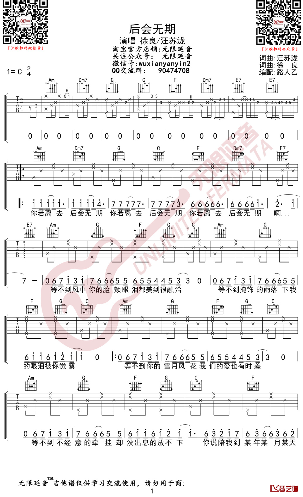 徐良/汪苏泷《后会无期》吉他谱弹唱谱